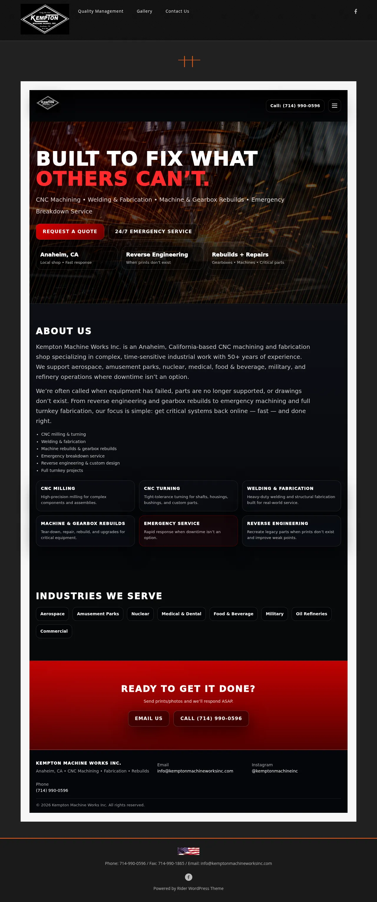 4070 E Leaverton Ct, Anaheim, CA 92807, USA, Anaheim, California, United States(714) 990-0596info@kemptonmachineworksinc.comhttp://kemptonmachineworksinc.com/