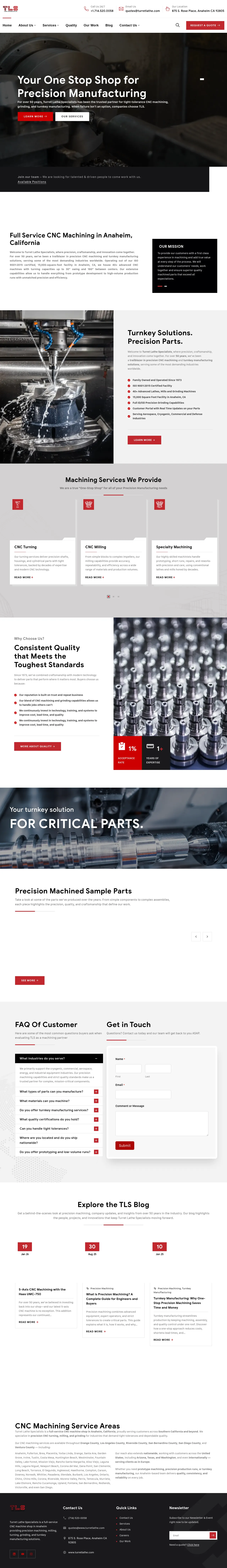 Turret Lathe Specialists is a full-service CNC machine shop based in Anaheim, California, providing precision turning, milling, grinding and turnkey manufacturing services. The company supports aerospace, cryogenic, defense and industrial customers with prototype through high-volume production of tight-tolerance components. Services include precision machining, sub-assembly and inspection with integrated project management for on-time delivery.