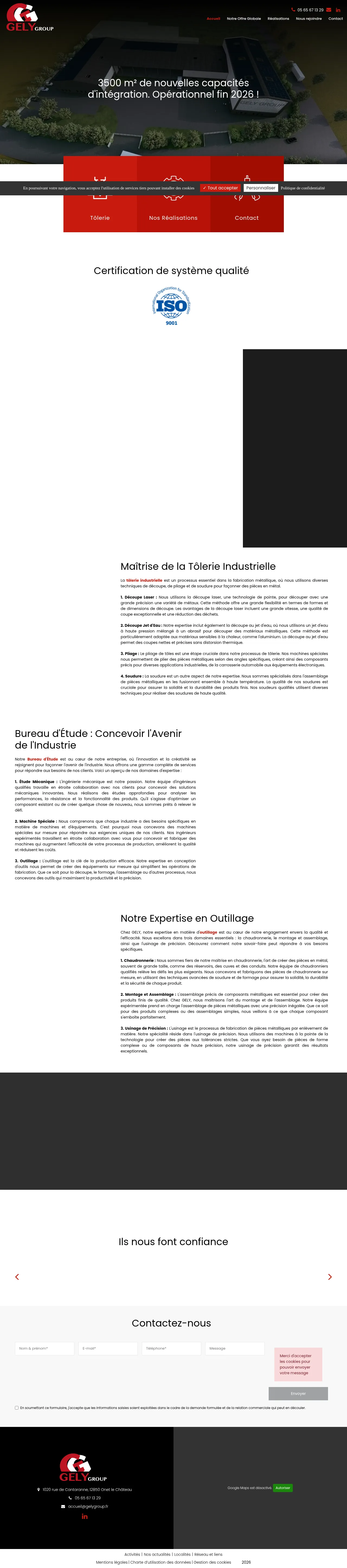 GELY Group is an industrial manufacturing company specializing in sheet metal work, mechanical design, and precision machining. The firm provides integrated industrial solutions, including boiler making, assembly, and custom machine manufacturing for sectors such as aerospace, defense, energy, and automotive. With over 37 years of experience, the company operates a vertically integrated service model that manages projects from initial design and engineering to final on-site installation. Their facilities include specialized workshops for laser cutting, waterjet cutting, and precision machining, supported by an internal research and design office. The company is committed to high-quality standards and rapid project turnaround for both prototypes and serial production.