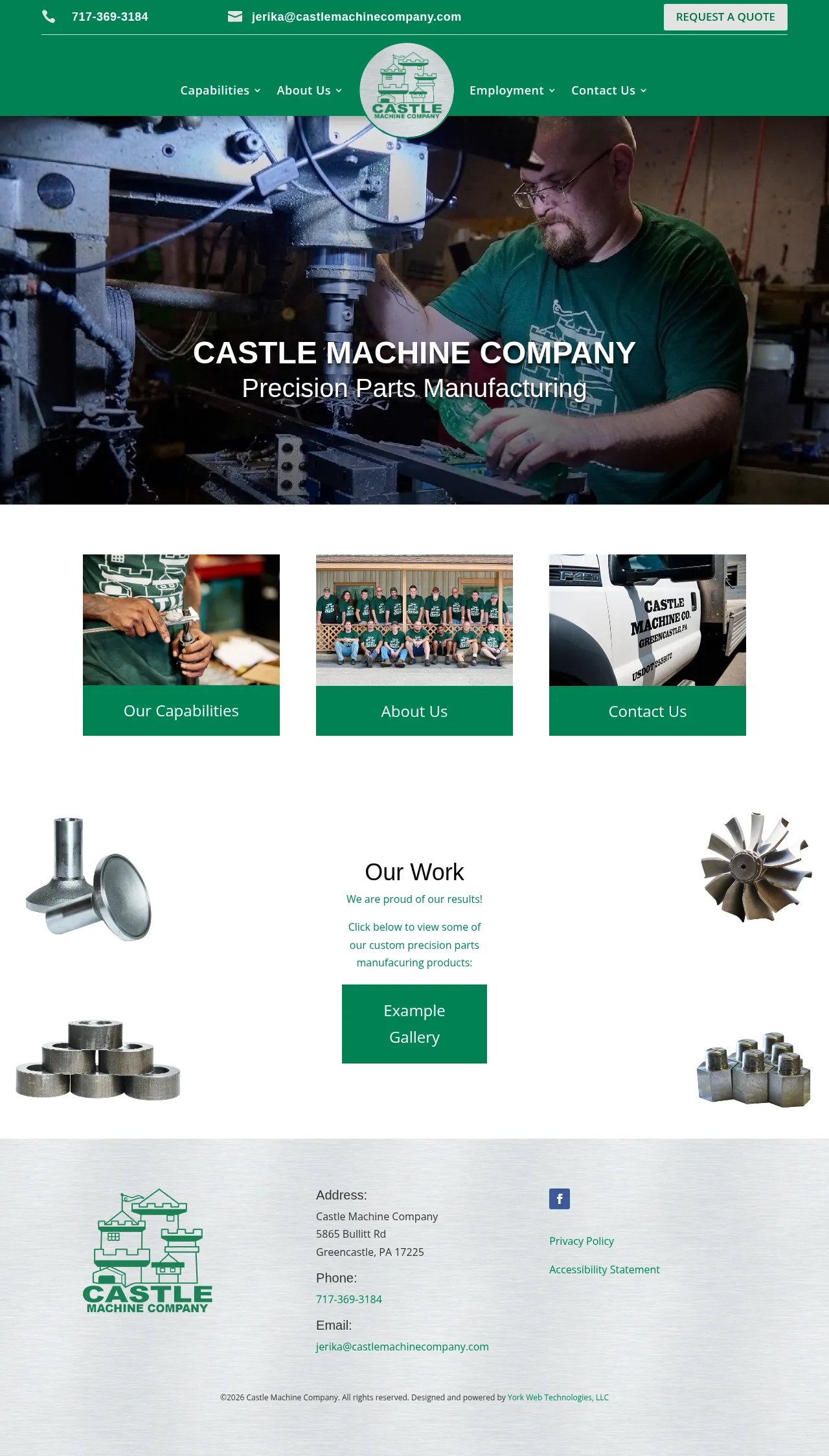 Castle Machine Company is a precision parts manufacturer based in Greencastle, Pennsylvania. Originally established in 1974, the company specializes in CNC machining services, including multi-axis lathe and milling operations. They serve various industrial clients by utilizing a combination of legacy manual equipment and modern 5-axis CNC machining systems. As a multi-generational family-owned business, the company focuses on continuous facility upgrades and technology integration to maintain manufacturing accuracy. Their operations are housed in a dedicated facility designed to support custom precision component production.