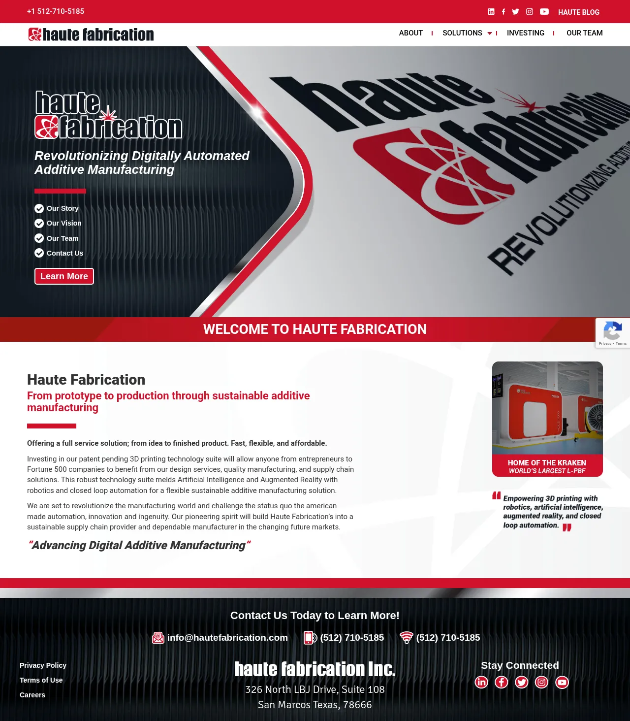 Haute Fabrication is an additive manufacturing provider specializing in end-to-end production solutions, ranging from initial design to final output. The company utilizes a proprietary suite of 3D printing technologies integrated with artificial intelligence, augmented reality, and robotics to facilitate closed-loop automation. Their services cater to a diverse clientele, including individual entrepreneurs and large-scale organizations. By leveraging sustainable manufacturing practices, the company provides supply chain support and rapid production capabilities. Haute Fabrication focuses on digital transformation and innovative automation to optimize traditional manufacturing workflows.