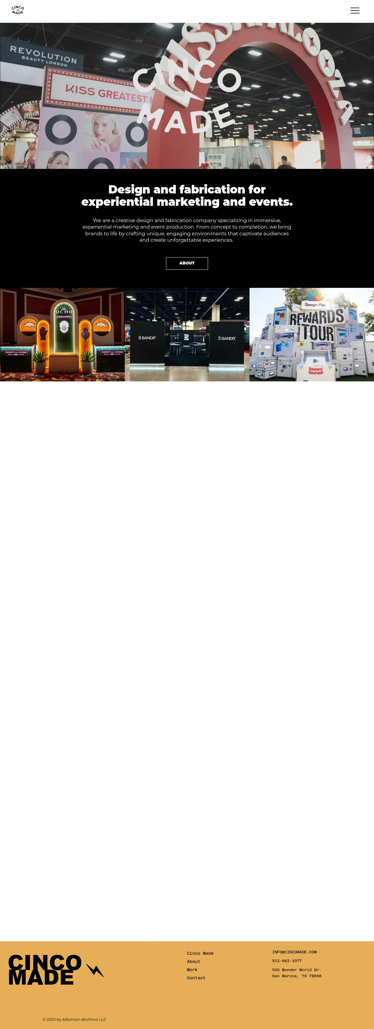Cinco Made specializes in custom design and fabrication services tailored for the experiential marketing and event industries. The company provides end-to-end solutions, encompassing everything from initial design conceptualization to final production and installation. By focusing on high-impact environments, they assist brands and agencies in bringing unique creative visions to life. Their team emphasizes technical craftsmanship and logistical precision to ensure each project meets the specific demands of temporary installations and interactive spaces. They operate as a dedicated partner for clients seeking bespoke builds for diverse event applications.