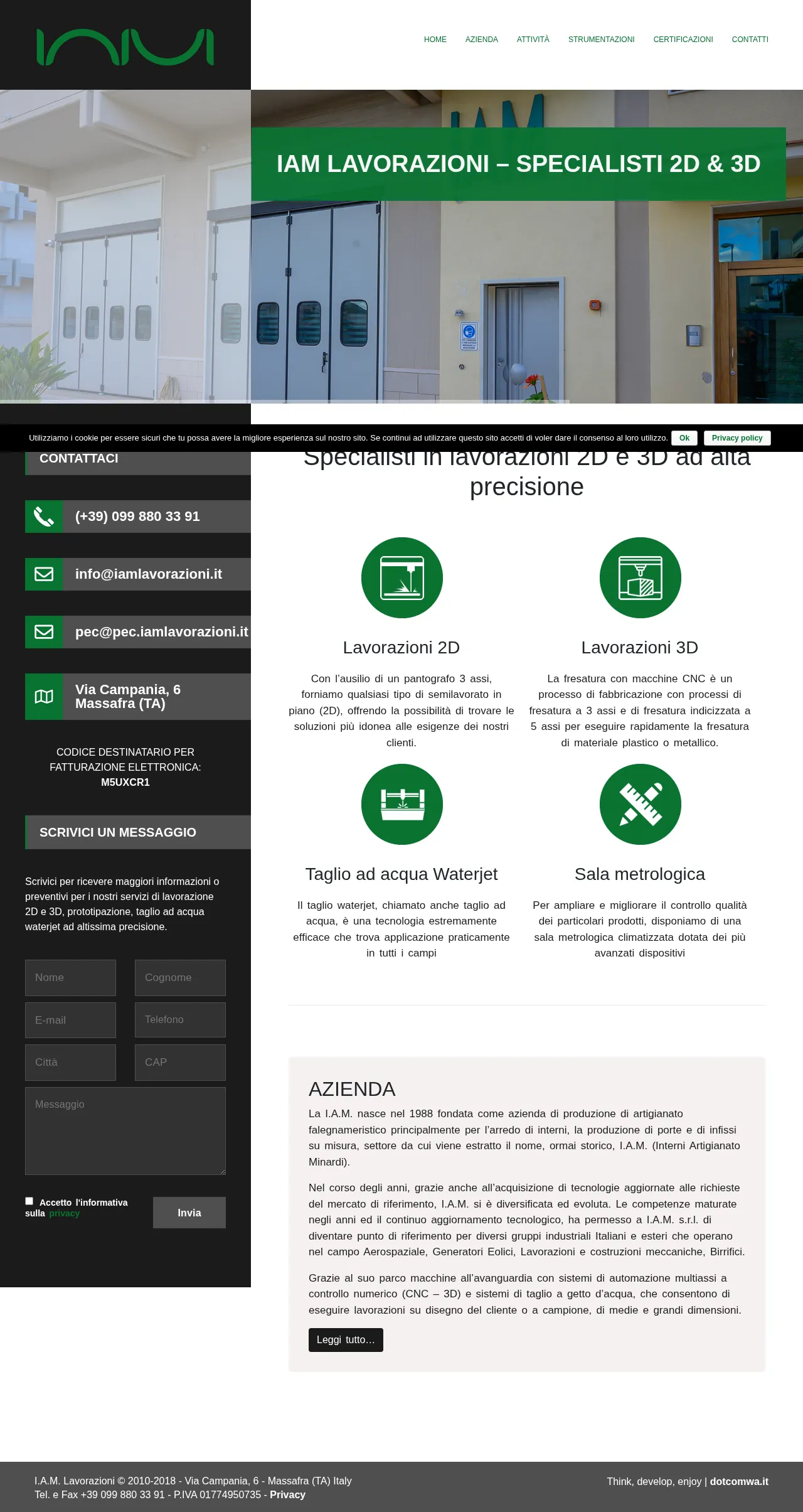 I.A.M. Lavorazioni is an Italian manufacturing firm specializing in high-precision 2D and 3D machining and advanced waterjet cutting. Originally founded as a woodworking enterprise, the company has evolved to serve diverse industrial sectors, including aerospace, wind energy, and mechanical engineering. They utilize modern multi-axis CNC technology and climate-controlled metrology to ensure stringent quality standards for complex, large-scale parts. Their services range from prototype development to the production of custom components based on client drawings or samples. The company is committed to providing tailored solutions for both domestic and international industrial clients.