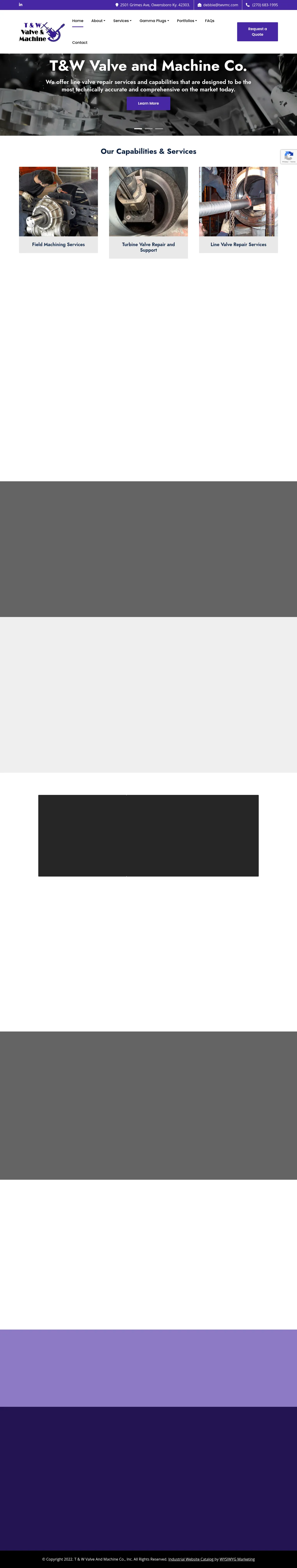 TWVMC is an industrial service provider specializing in on-site field machining, valve repair, and component restoration. The company supports critical infrastructure in sectors including power generation, oil and gas, petrochemical, and chemical processing. Their technical capabilities include precision machining, automatic orbital tube welding, turbine valve maintenance, and custom metal fabrication. With service centers in Kentucky and Illinois, TWVMC deploys qualified technicians for both shop-based and mobile plant-site operations. They also manufacture specialized industrial components such as radiographic and gamma plugs to ensure system integrity during non-destructive testing.