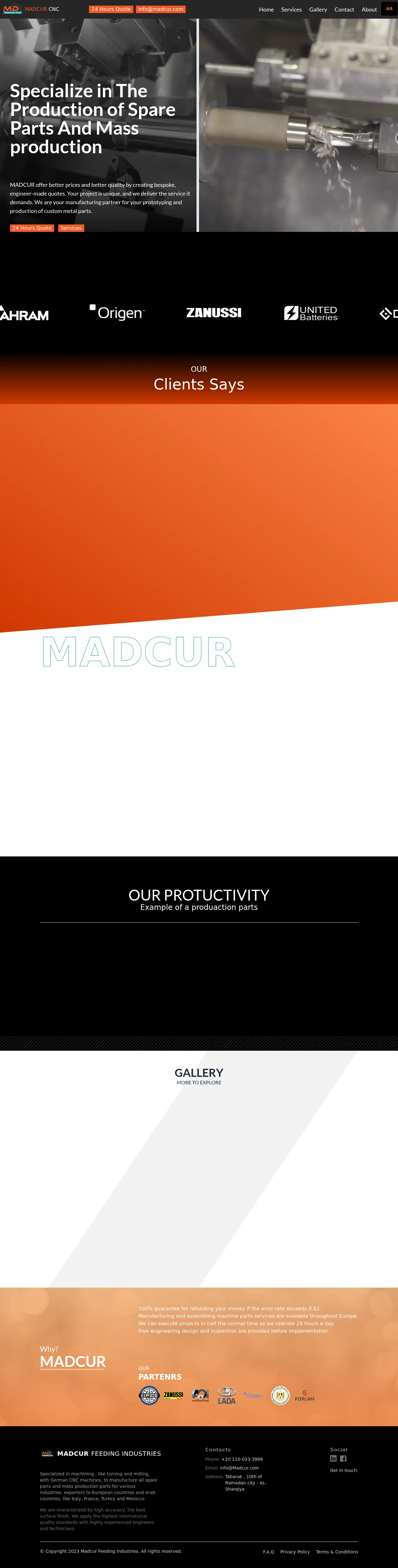 Madcur Feeding Industries specializes in high-precision CNC machining, including turning and milling services for mass production and spare parts manufacturing. The company serves various international sectors across Europe, the Middle East, and North Africa. Utilizing advanced German CNC technology, Madcur ensures high accuracy, optimal surface finishes, and adherence to rigorous quality standards. They offer comprehensive engineering support, including inspection and design, and operate a 24-hour production schedule. Their expertise is utilized by a diverse global client base for custom metal part fabrication.