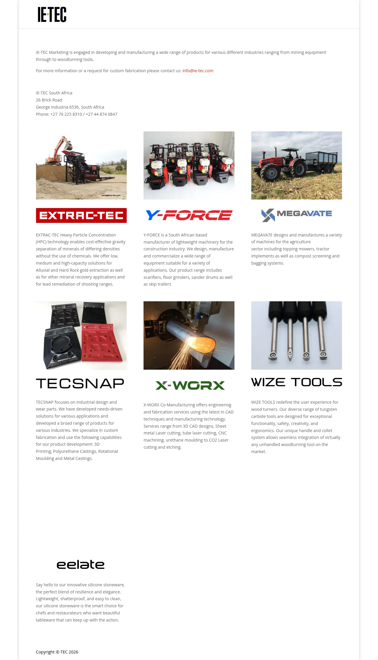 IE-TEC provides comprehensive manufacturing and engineering solutions serving the mining, agricultural, and construction sectors. Through its X-WORX division, the company offers advanced fabrication services including CAD design, precision cutting, and CNC machining. Additionally, the firm develops specialized woodturning tools under the WIZE TOOLS brand, focusing on ergonomic design and modular collet systems. The company manages the full production lifecycle, from initial engineering design to finished product manufacturing. By integrating modern fabrication technology with versatile tool development, the organization addresses a diverse range of industrial and craft-based requirements.