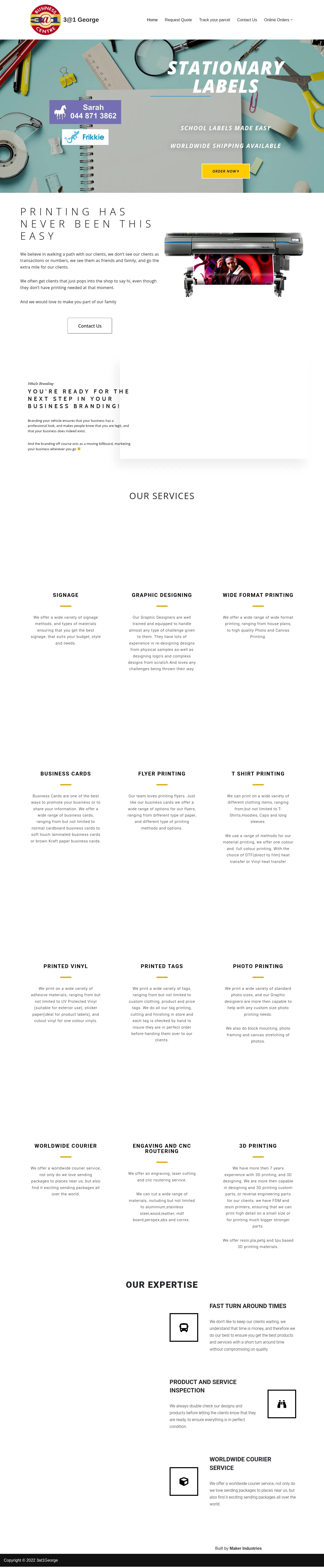 3@1 George provides a comprehensive suite of professional printing, branding, and design services. The company specializes in vehicle branding, signage, wide-format printing, and personalized apparel, alongside advanced technical capabilities like CNC routering, laser cutting, and 3D printing. With over seven years of experience in custom design and fabrication, they serve both local and international clients through a dedicated courier service. The firm maintains a strong commitment to quality control by hand-inspecting products prior to delivery to ensure project accuracy. They pride themselves on a client-focused approach that balances fast turnaround times with personalized service.