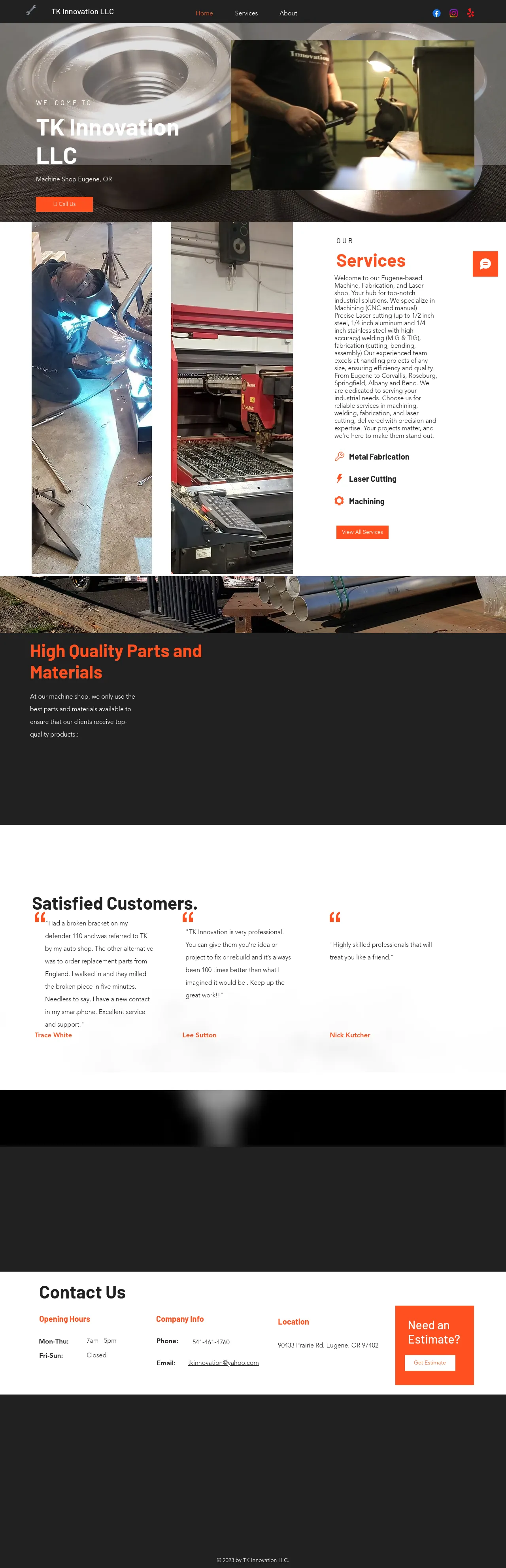 TK Innovation is an industrial machine shop located in Eugene, Oregon, providing specialized machining, fabrication, and laser cutting services. The company serves a regional client base across Eugene, Corvallis, Roseburg, Springfield, Albany, and Bend with high-precision manufacturing solutions. Their core capabilities include CNC and manual machining, metal fabrication, and precise laser cutting for various industrial applications. Committed to quality, the facility utilizes premium materials to ensure durable, accurate results for custom projects and repairs. They are recognized for professional technical expertise and attentive customer support.