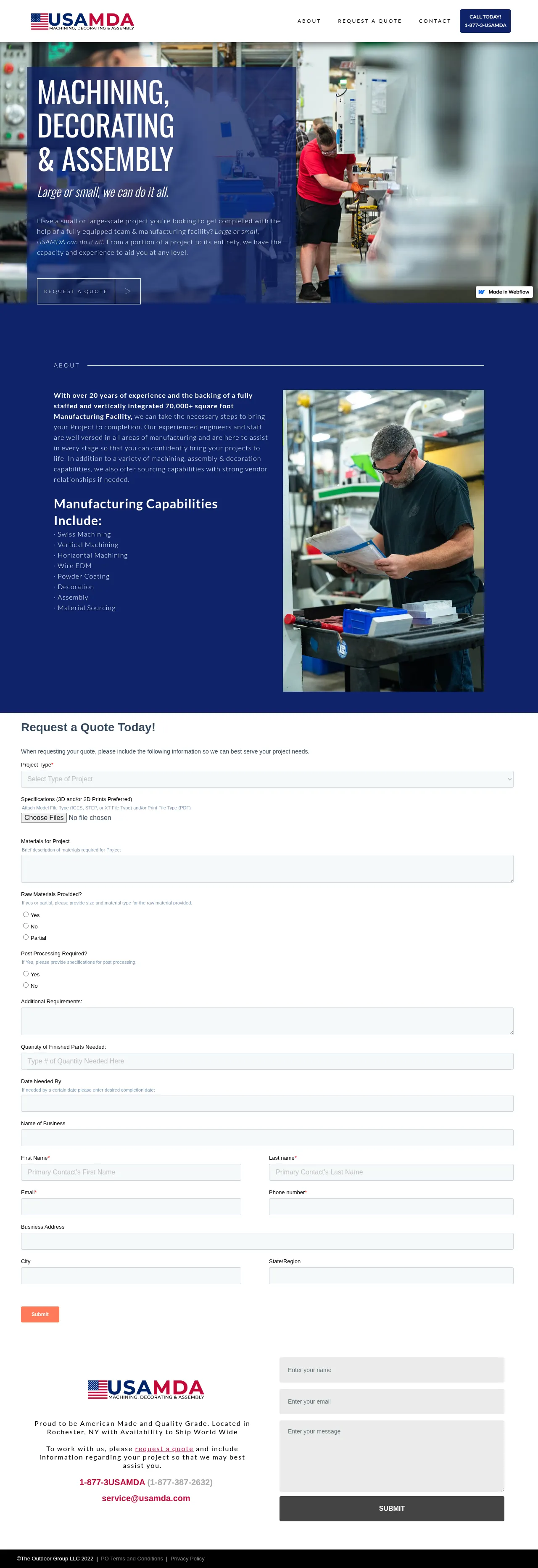 USAMDA is an American-based manufacturing company headquartered in Rochester, New York. The firm specializes in precision machining, industrial decorating, and product assembly services for a wide range of project scales. They maintain global shipping capabilities to support both domestic and international client requirements. Committed to high-quality standards, the company provides comprehensive manufacturing solutions tailored to specific project needs. USAMDA focuses on scalability, accommodating both small-run and large-volume production requests.