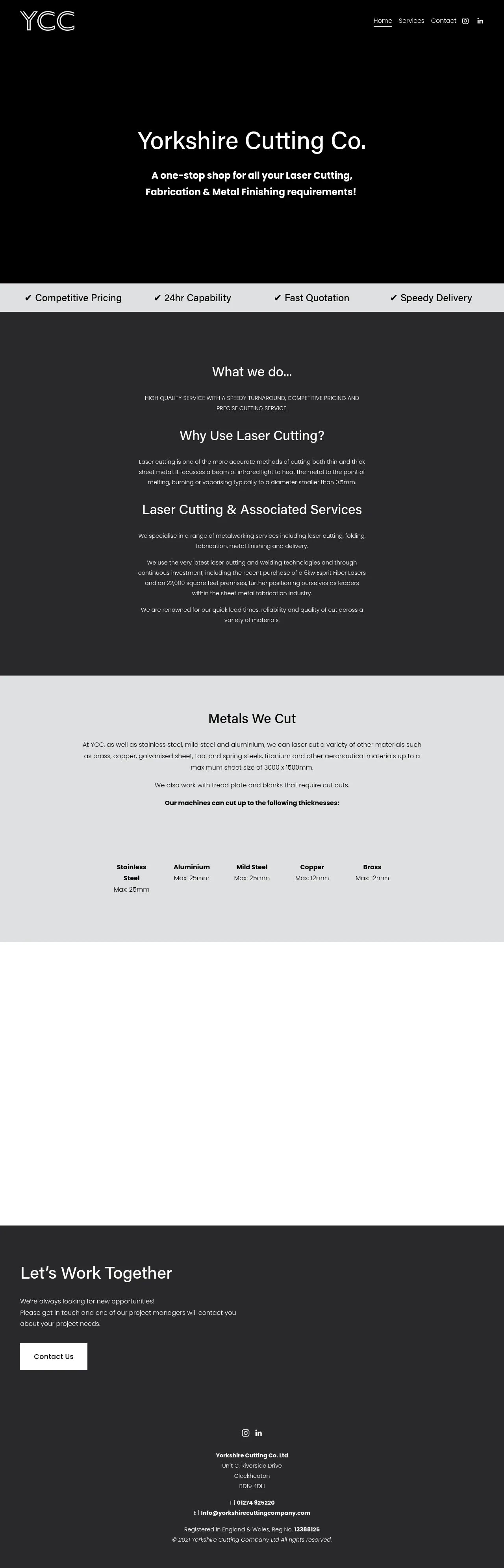 Yorkshire Cutting Co. is a sheet metal fabrication specialist providing precision metalworking services from its 22,000 square foot facility. The company utilizes advanced fiber laser and welding technologies to serve a variety of sectors, offering expertise in cutting, folding, and finishing. Known for high-quality production and short lead times, the firm handles diverse material types with a focus on reliability and accuracy. Their services are supported by a commitment to operational efficiency and customer-focused project management. The company maintains a capability to process materials up to 3000 x 1500mm to accommodate complex client specifications.