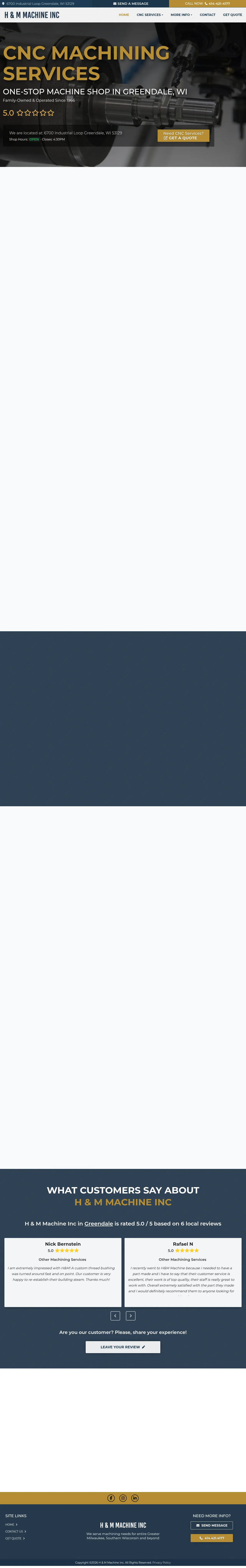 H&M Machine is a family-owned and operated precision machine shop located in Greendale, Wisconsin. Established in 1966, the company provides CNC machining, turning, and milling services for a variety of industries. They specialize in high-precision, tight-tolerance work ranging from small-quantity prototypes to larger production runs. The facility utilizes advanced CNC equipment to deliver consistent, accurate results, maintaining a commitment to quality craftsmanship across three generations. Their services are available to clients throughout Southern Wisconsin and the Greater Milwaukee area.