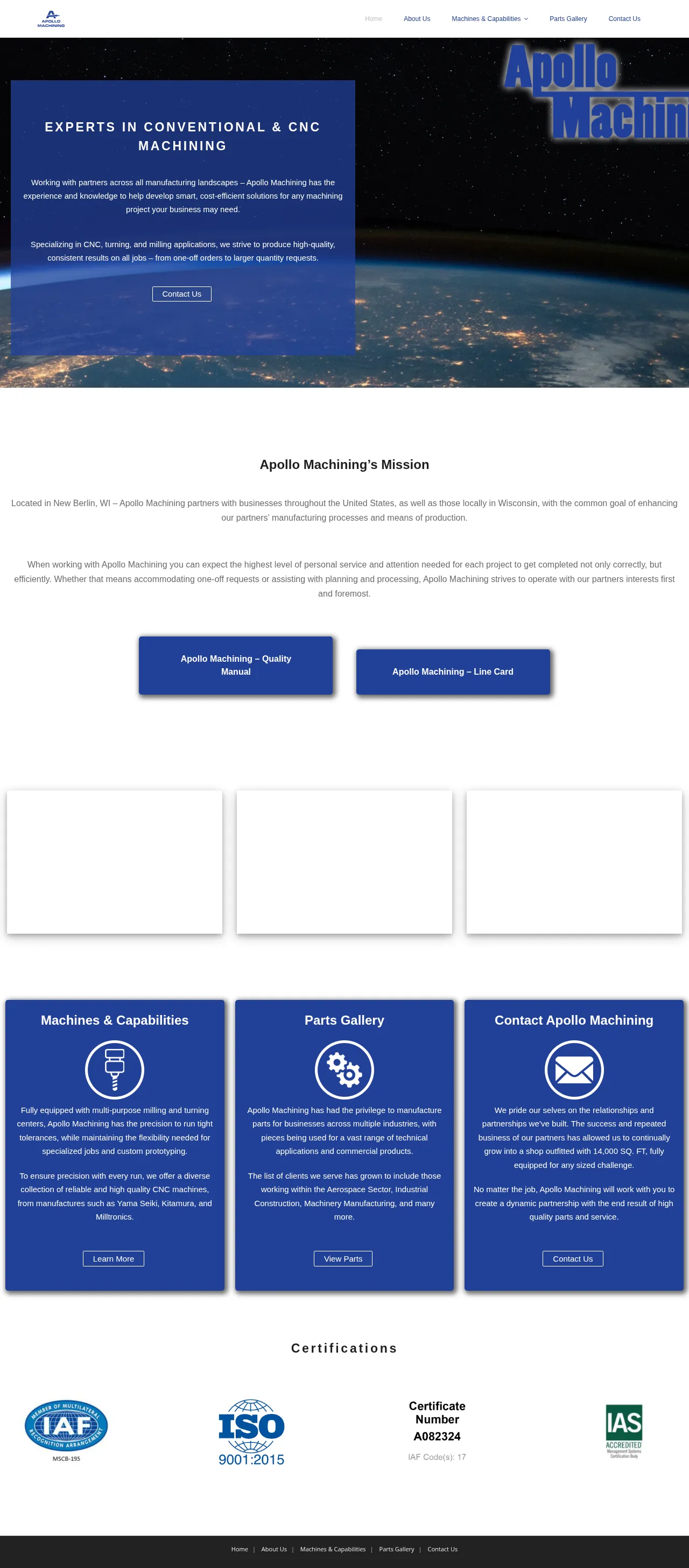 Apollo Machining is a full-service machine shop based in New Berlin, Wisconsin, specializing in CNC turning and milling. Operating out of a 14,000-square-foot facility, the company manages projects ranging from single prototypes to high-volume production runs. They serve a diverse client base across industries including aerospace, industrial construction, and machinery manufacturing. Their technical capabilities are supported by a combination of modern CNC equipment and manual machining tools. The company emphasizes precision manufacturing, technical quality control, and flexible service to accommodate custom order requirements.
