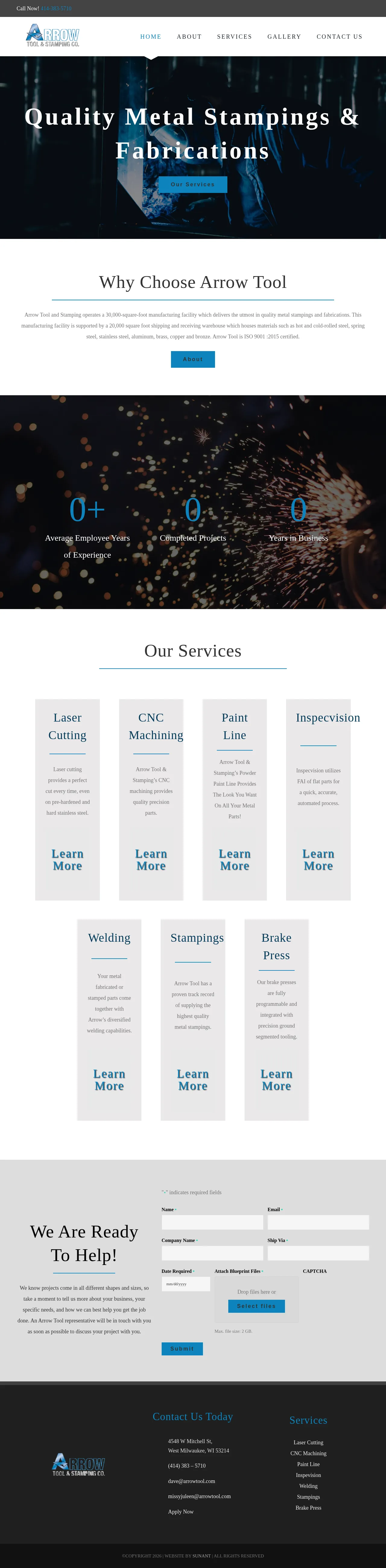 Arrow Tool and Stamping provides high-quality metal stamping and precision fabrication services from its 30,000-square-foot manufacturing facility. The company operates an integrated 20,000-square-foot warehouse to manage a diverse inventory of raw materials. Key capabilities include laser cutting, CNC machining, welding, and automated punching processes. They utilize advanced inspection technology to ensure consistent quality control and adherence to precise specifications throughout the production cycle. Serving various industrial sectors, the firm supports projects from initial concept development through to final high-volume production.