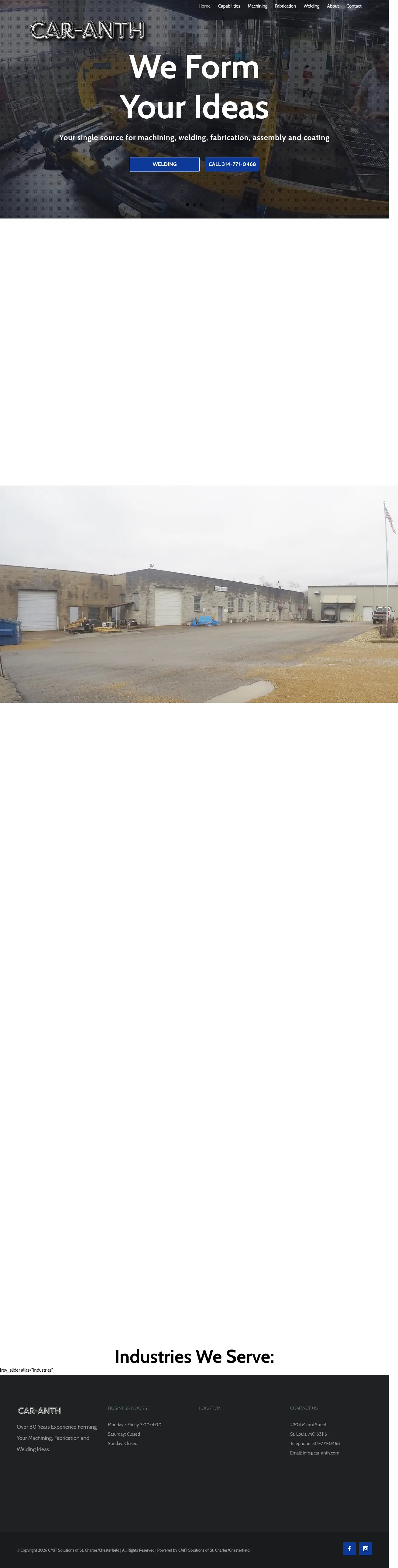 Car-Anth Manufacturing is a St. Louis-based industrial service provider specializing in machining, fabrication, welding, and product assembly. With over 75 years of experience, the company serves as a single-source partner for OEMs, offering solutions ranging from small-run custom components to high-volume production. Their facility is equipped for manual and robotic welding, precision CNC machining, and specialized wire forming. By integrating design, engineering, and finishing processes, Car-Anth delivers ready-to-use products to a diverse client base across the United States.