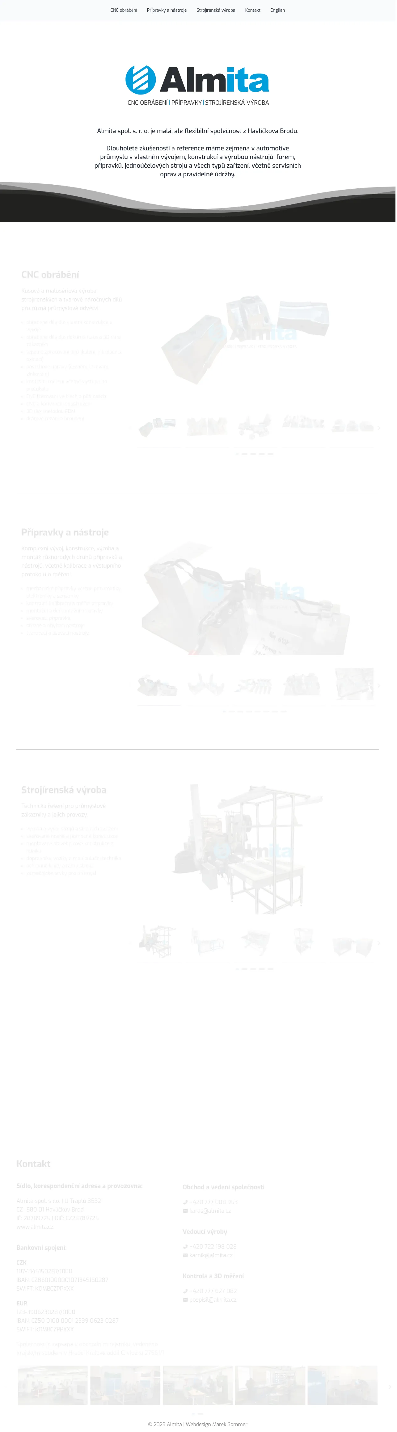 Almita spol. s. r. o. is an engineering company based in Havlíčkův Brod specializing in CNC machining, tool production, and mechanical assembly. The company supports the automotive and general manufacturing sectors through custom development, construction, and the production of single-purpose machines, molds, and fixtures. Their technical expertise encompasses both one-piece and small-batch production, with full capability for precision measuring and output documentation. They provide comprehensive services ranging from design and prototyping to regular maintenance and service repairs. By offering flexible technical solutions, Almita ensures high-quality support for complex industrial operations.