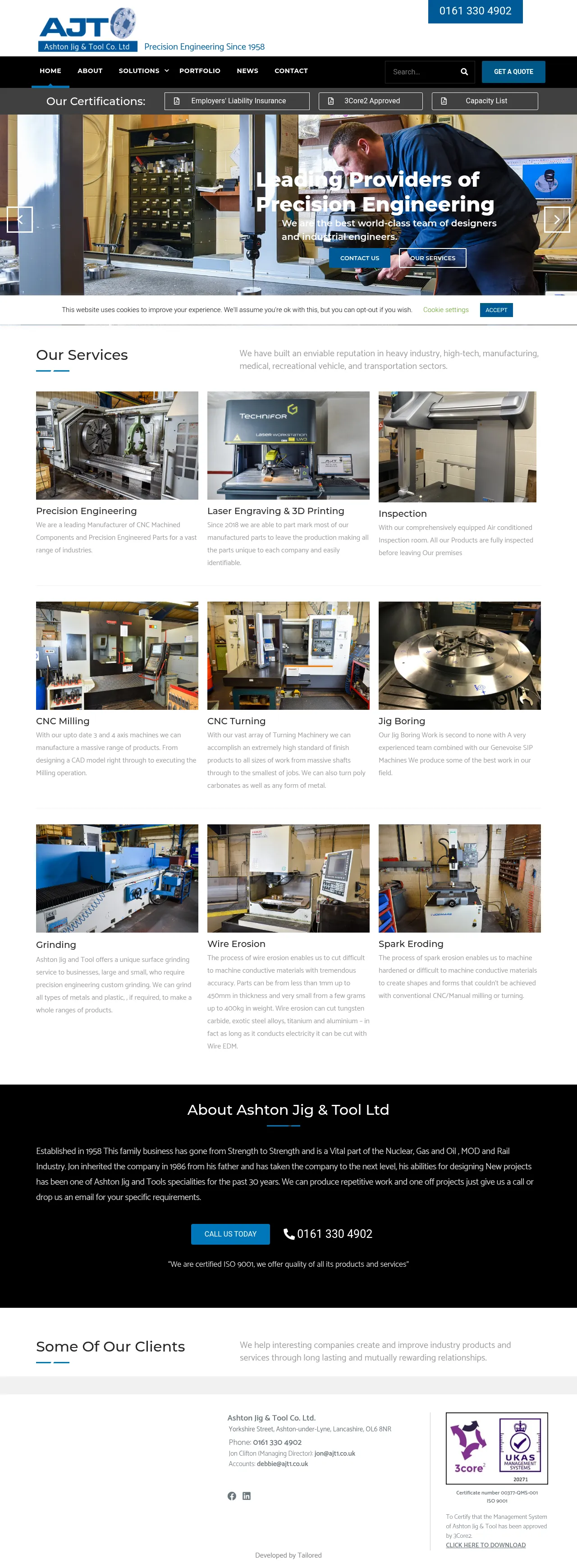 Ashton Jig & Tool Co. Ltd. is a precision engineering and toolmaking company based in Manchester, UK. Established in 1958, the firm operates a large workshop staffed by over 20 skilled technicians to deliver jigs, tools and precision components. The company provides design and industrial engineering support and specializes in wire erosion (Wire EDM) for difficult-to-machine conductive materials.