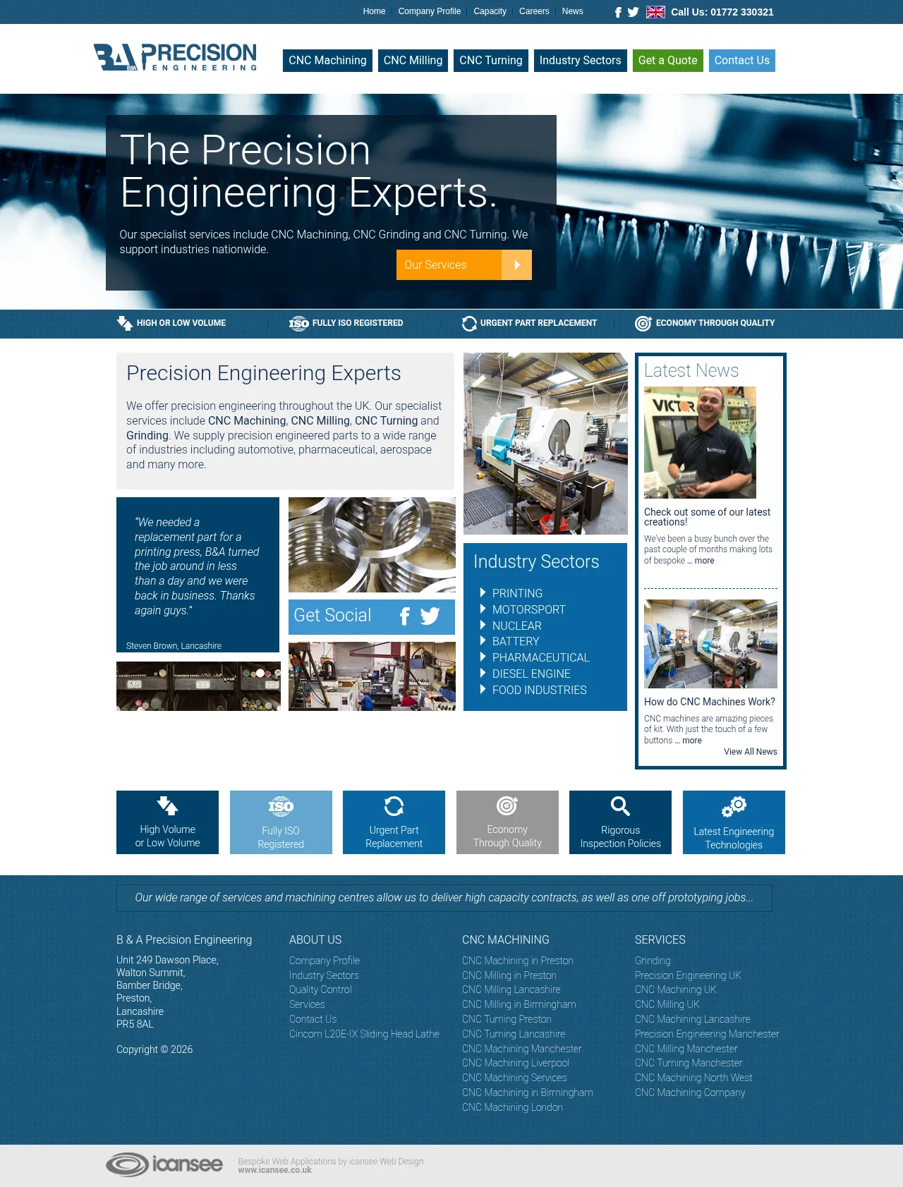 B & A Precision Engineering Ltd provides precision engineering services across the UK and Europe. The company specialises in CNC machining, CNC turning and grinding and supports both high-volume production and one-off prototypes. It supplies precision-engineered components to industries including automotive, pharmaceutical, aerospace, motorsport, nuclear, battery and food. Services span from CAD/CAM programming and component manufacture through to delivery.