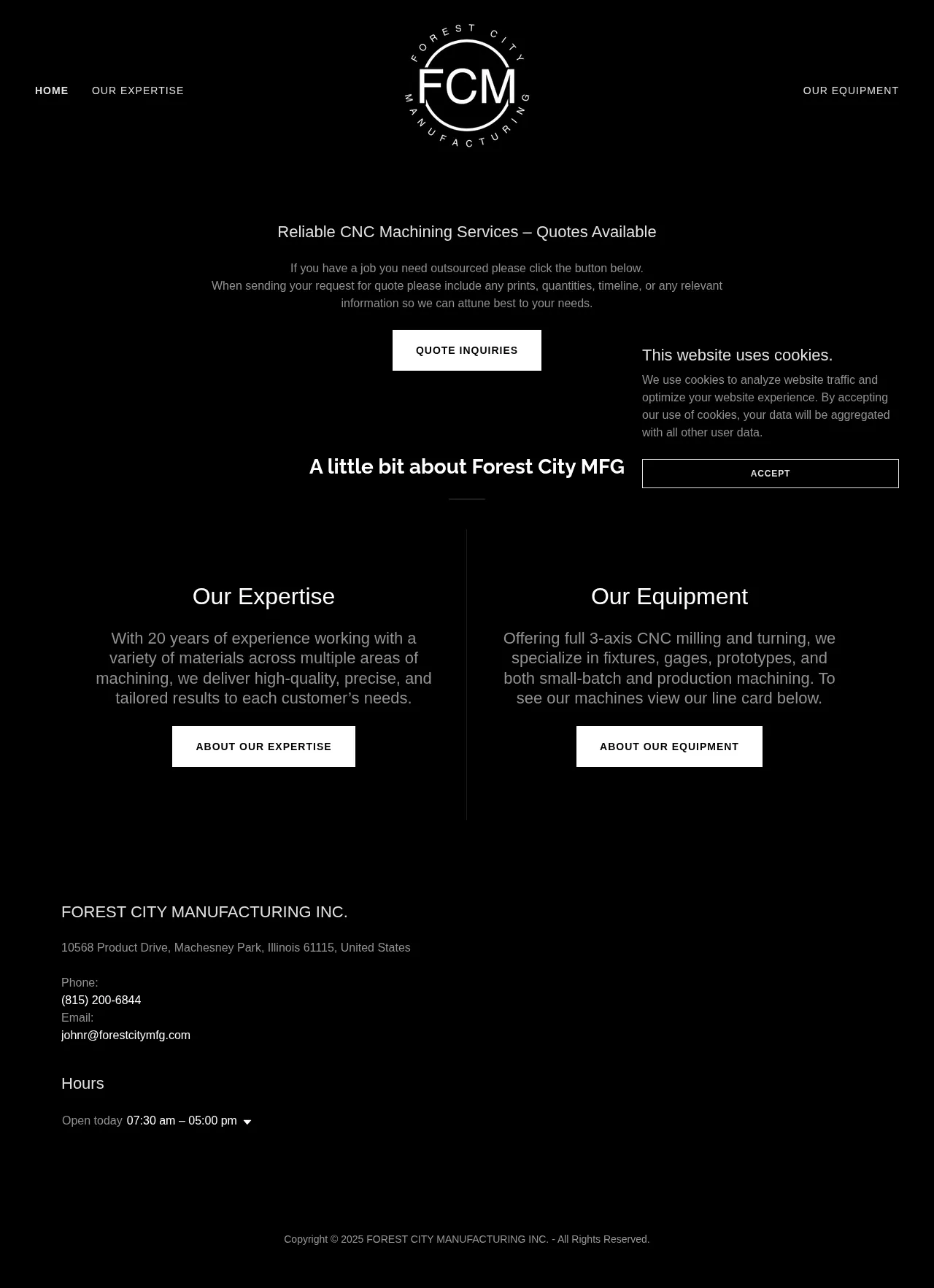 Established in 2023, Forest City Manufacturing provides precision CNC machining services supported by over 20 years of industry experience. The company serves a diverse range of sectors, including automotive, food production, agriculture, and water filtration. Their core capabilities encompass CNC milling, CNC turning, precision grinding, and inspection services. The business is committed to delivering high-quality, on-time components tailored to specific client specifications. They emphasize a collaborative approach, encouraging customers to provide comprehensive project documentation for accurate quotations.
