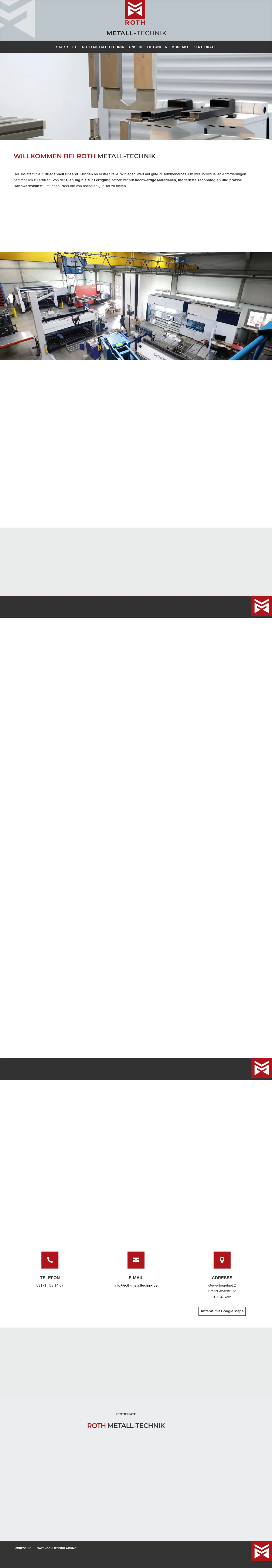 Roth Metall-Technik is a specialized metal processing company founded in 1998, operating from a 1,280-square-meter facility in Roth, Germany. The company provides comprehensive metalworking and construction solutions, including design, fabrication, and assembly services. They support a variety of industries, such as mechanical engineering, electrical engineering, and industrial cabinet manufacturing. Their capabilities range from prototyping to full-scale serial production, utilizing advanced CNC machinery for precision cutting, bending, and welding. By maintaining an extensive inventory and efficient internal systems, they prioritize high quality, fast production times, and customer-focused project support.