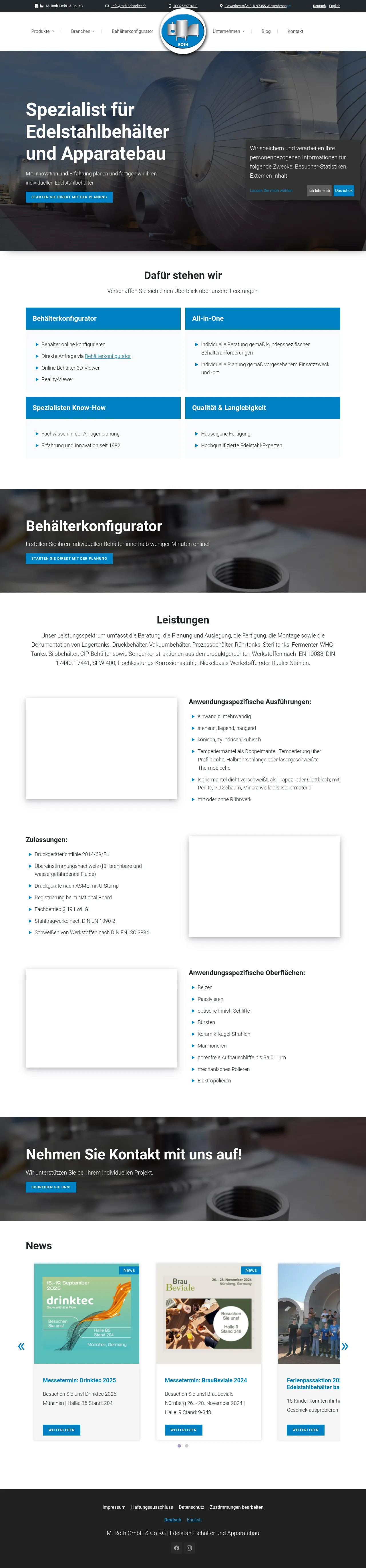 M. Roth GmbH & Co. KG is a specialized manufacturer of custom stainless steel vessels and apparatus for industrial applications. The company provides design, planning, and fabrication services for storage tanks, pressure vessels, bioreactors, fermenters, and process containers tailored to specific site requirements. They serve a wide range of sectors, including the pharmaceutical, chemical, beverage, and food industries, with capabilities for both factory-based and on-site assembly. Utilizing advanced manufacturing techniques, the company focuses on high-hygiene standards, precise temperature control, and compliance with international pressure equipment regulations. Their expertise encompasses surface treatments, such as electropolishing and mechanical grinding, to meet stringent aseptic and process-critical demands.