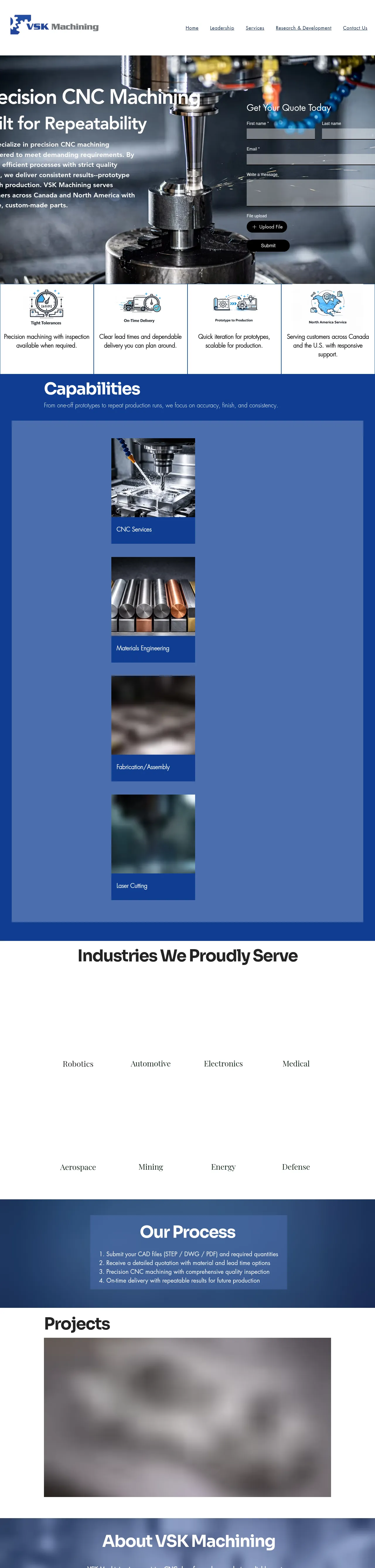 VSK Machining provides precision CNC machining and fabrication services for clients across Canada and North America. The company specializes in producing custom parts, ranging from prototypes to full production runs, for industries including aerospace, automotive, energy, and medical. They utilize advanced manufacturing processes, focusing on accuracy, repeatability, and strict quality control. The team emphasizes clear communication and dependable lead times throughout the production cycle. VSK Machining is committed to operational excellence and continuous improvement to ensure project specifications are met.