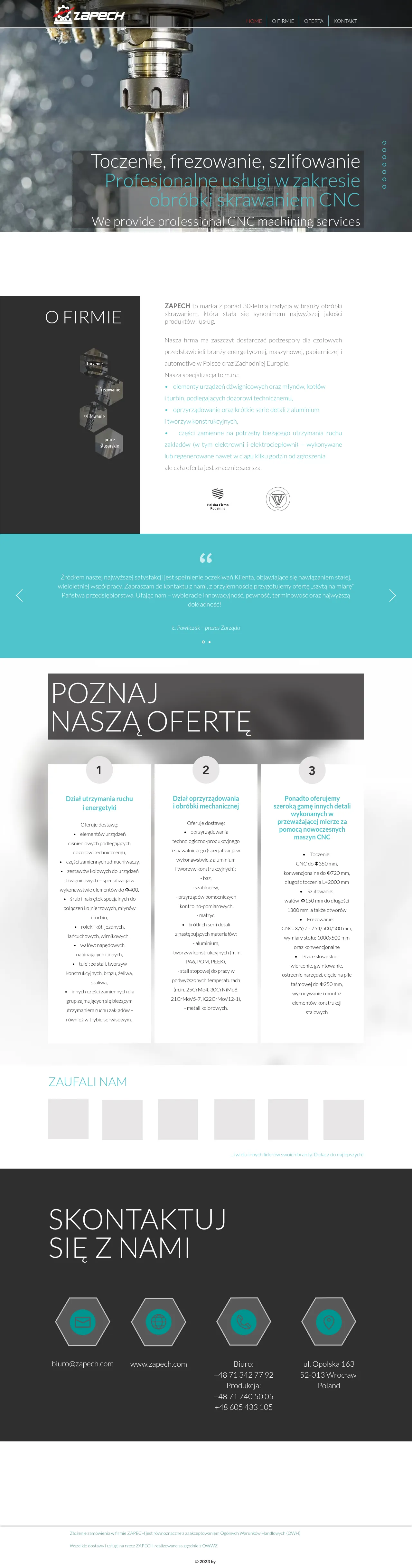 ZAPECH is a manufacturing firm with over 30 years of experience specializing in precision CNC machining and mechanical processing. The company serves the energy, automotive, machinery, and paper industries across Poland and Western Europe. Their core competencies include CNC turning, milling, and grinding, as well as comprehensive metalwork and construction assembly. ZAPECH operates with a focus on high-quality component production using modern CNC technology. Their facility is equipped to handle complex projects involving diverse engineering materials.