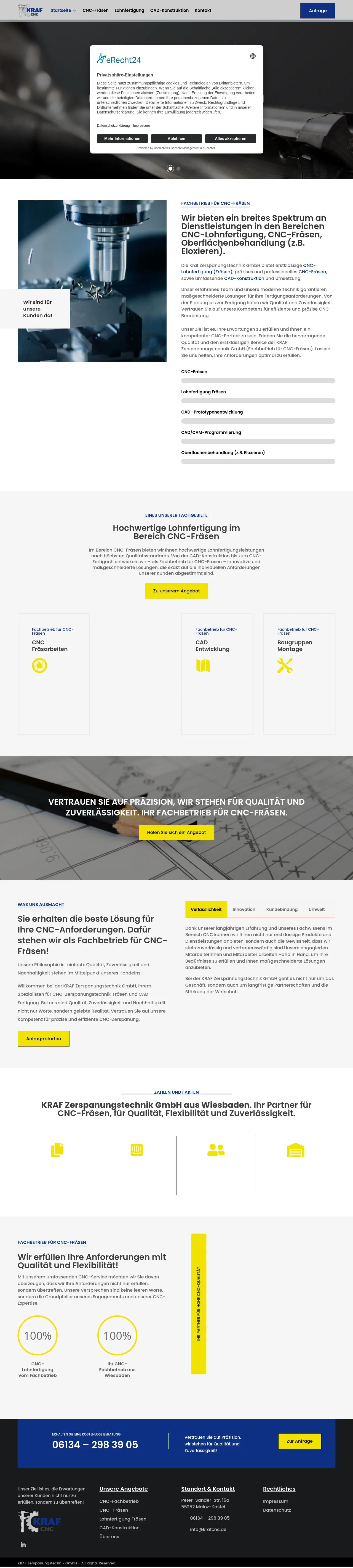 KRAF-Zerspanungstechnik GmbH is a CNC milling specialist based in Wiesbaden offering contract machining, CAD/CAM programming and CAD design. The company manufactures precision and complex components for prototypes, small series and bespoke orders and provides surface treatments such as anodizing. It operates a modern CNC workshop staffed by trained personnel and serves local and regional customers.