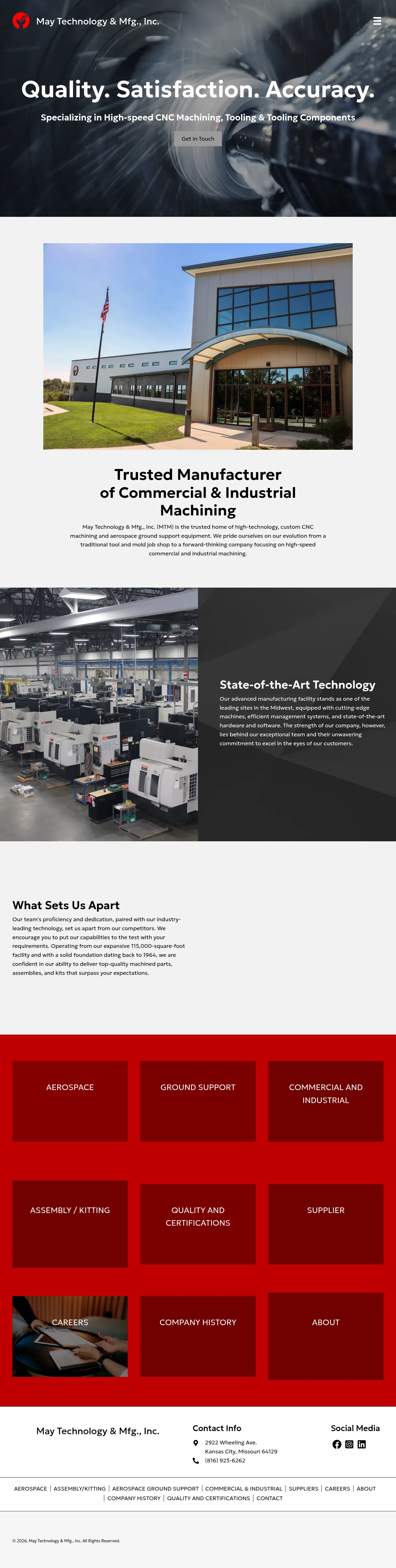 May Technology & Mfg., Inc. provides high-speed and custom CNC machining, tooling, and tooling components for aerospace, commercial, and industrial customers. The company manufactures aerospace ground support equipment, mechanical airframe components, assemblies, and kits. Its quality system is maintained to meet aerospace and commercial standards.