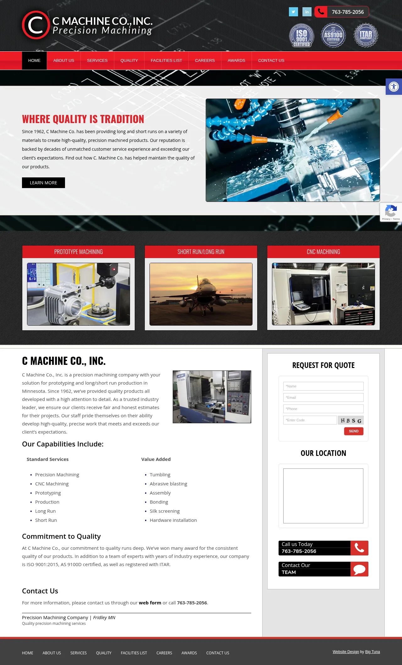 C Machine Co., Inc. is a precision machining company based in Fridley, Minnesota, established in 1962. The company specializes in both short and long-run production, offering services such as CNC machining, prototyping, and assembly. They support various manufacturing needs with a strong commitment to quality and process improvement, maintaining a high success rate in meeting customer standards. The business is equipped to handle complex projects, providing value-added services including hardware installation, silk screening, and abrasive blasting. They serve as a reliable partner for industries requiring precise, high-quality machined components backed by robust quality management systems.