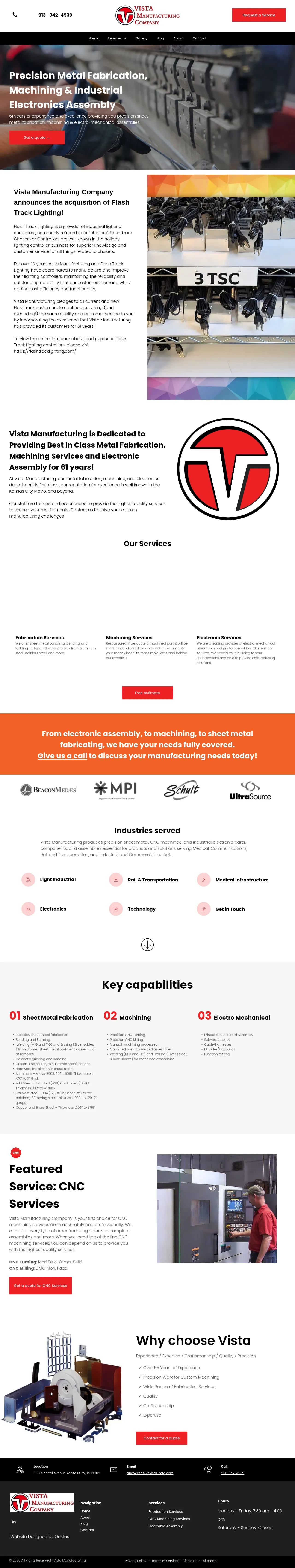 Vista Manufacturing Company is a contract manufacturer specializing in precision sheet metal fabrication, CNC machining, and industrial electronics assembly. From a 24,000 sq ft facility, the company produces parts and electromechanical assemblies for medical, communications, rail & transportation, and light industrial markets. Services include PCB and cable/harness assembly, box builds, welding, brazing, cosmetic finishing, and custom enclosure fabrication.