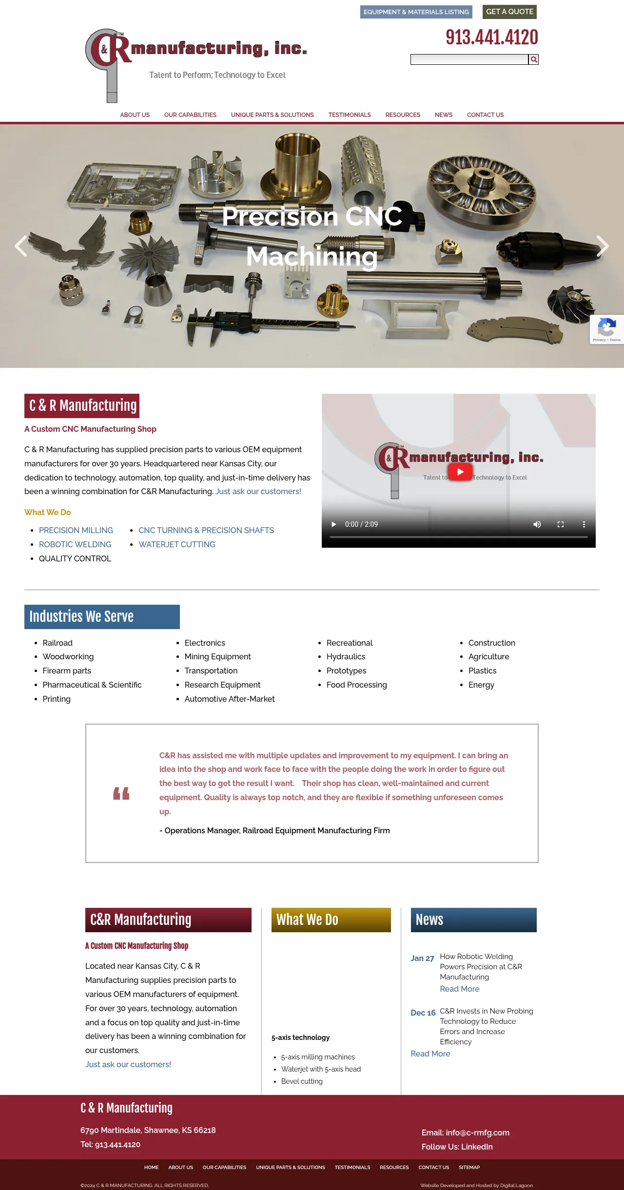 Operates as a single-source machine shop providing precision machining and related manufacturing services. The company produces machined components and assemblies for industrial customers. Equipment on site includes CNC machinery such as a Hurco VMX42i.