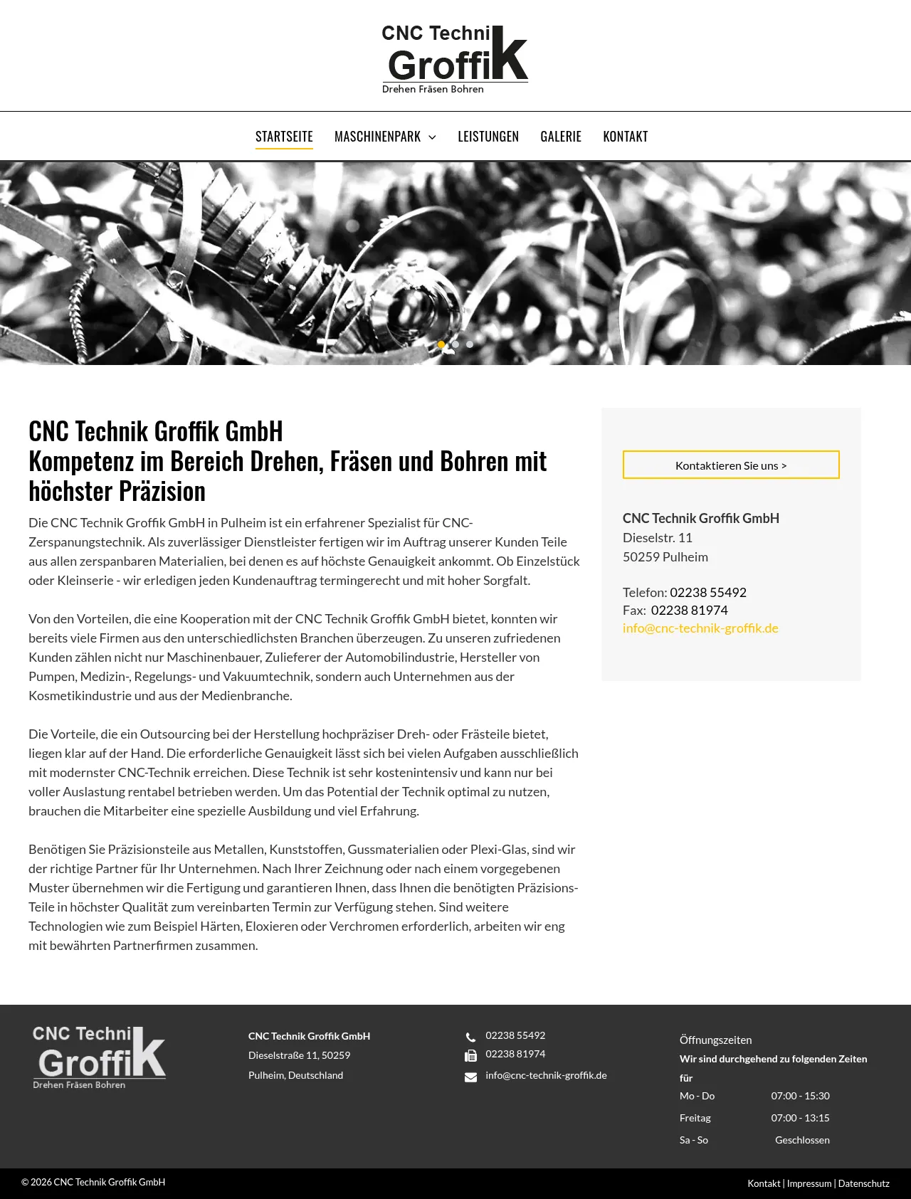 Dieselstraße 11, 50259 Pulheim, Germany, Nippes, Nordrhein-Westfalen, Federal Republic of Germany02238 55492info@cnc-technik-groffik.dehttp://www.cnc-technik-groffik.de/