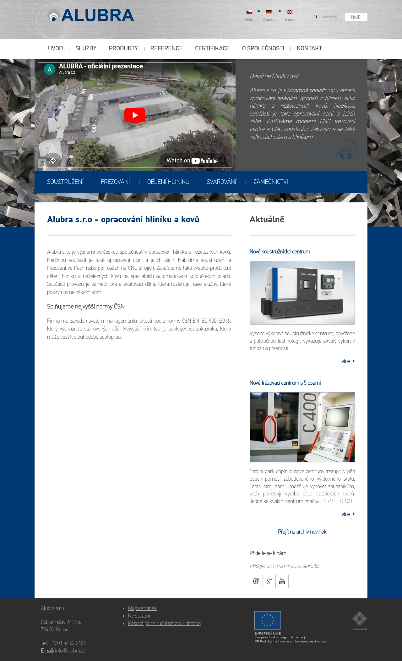Alubra s.r.o. is a Czech manufacturing company specializing in the precision machining of aluminum, steel, and non-ferrous alloys. The company provides comprehensive production services including 3-axis and 5-axis CNC milling, CNC turning, and high-efficiency automated sawing. Additional technical capabilities include professional welding, specialized locksmithing, and deburring for serial production. Serving industries such as sports equipment and telecommunications, Alubra utilizes modern machinery to maintain high accuracy and quality. They also offer wholesale supply and customized processing of industrial aluminum profiles.