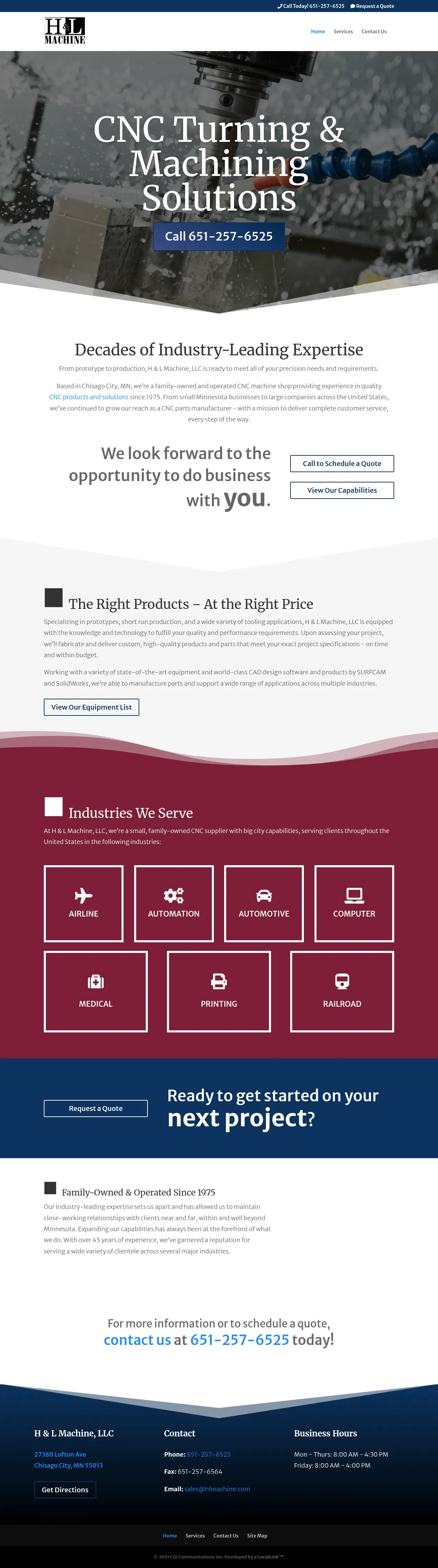 HL Machine is a precision CNC machining facility located in Chisago City, Minnesota. With over 45 years of industry experience, the company provides custom CNC turning and machining services for a diverse range of sectors including aerospace, automotive, medical, printing, and computer manufacturing. Their capabilities encompass both rapid prototyping and full-scale production of complex parts. The firm emphasizes quality assembly, precise engineering, and reliable turnaround times to support long-term partnerships with clients throughout the United States. They maintain a versatile equipment list to ensure high-precision manufacturing solutions tailored to unique customer specifications.