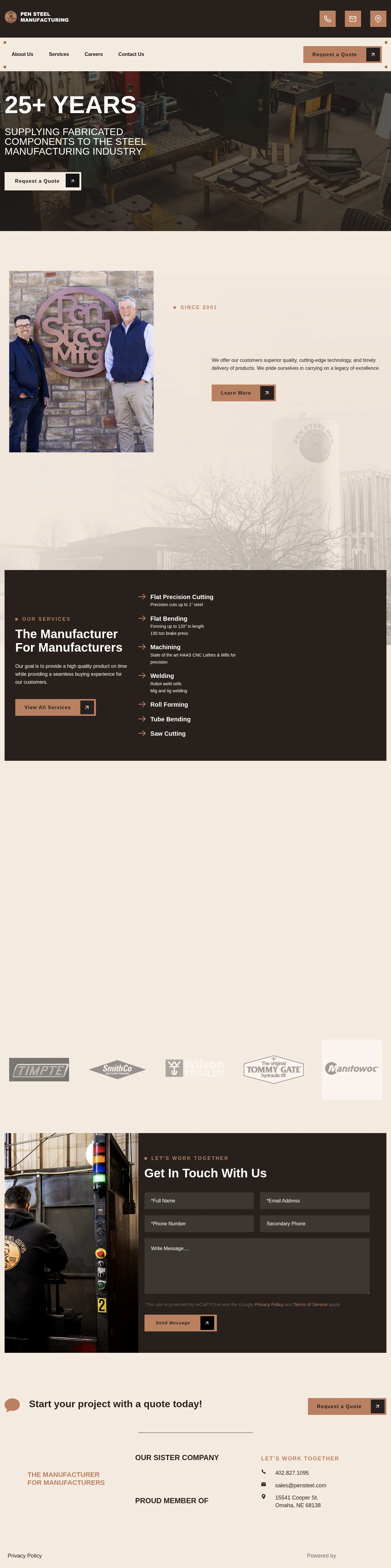 Pen Steel MFG. supplies precision fabricated components and machining services to industrial customers, including the steel manufacturing sector and markets such as automotive and aerospace. Capabilities cover tube and pipe fabrication, CNC vertical machining, robotic and manual welding, and automated cut-to-length saw cutting. The company supports projects from prototyping through production.