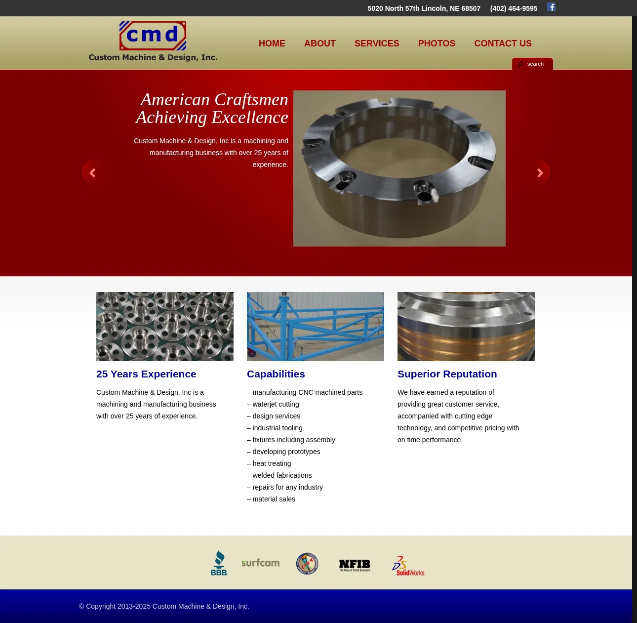 Custom Machine & Design, Inc is a machining and manufacturing company with over 25 years of experience. The firm provides CNC machining, waterjet cutting, tooling and fixture fabrication, prototyping, heat treating, welding and repair services across multiple industries. It also supplies a range of metalworking materials and offers design and engineering support.