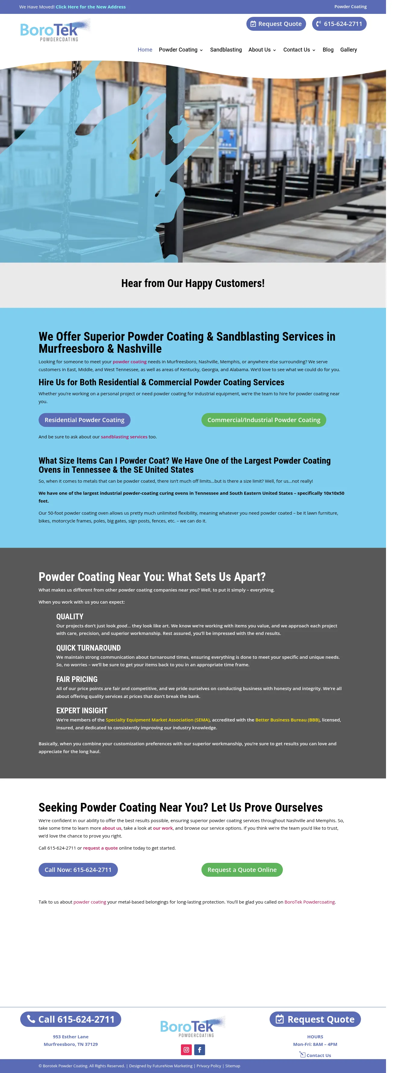 Borotek Powder Coating provides professional powder coating and sandblasting services for residential, commercial, and industrial applications. The company utilizes a large-scale industrial curing oven to accommodate a wide range of metal projects, including furniture, automotive frames, and structural components. Their facility is equipped to handle items up to 50 feet in length, offering comprehensive surface preparation and finishing solutions. In addition to coating services, they provide on-site pickup and delivery options for job sites across Tennessee and the surrounding region. The business is licensed and insured, backed by a one-year workmanship warranty against peeling and flaking.