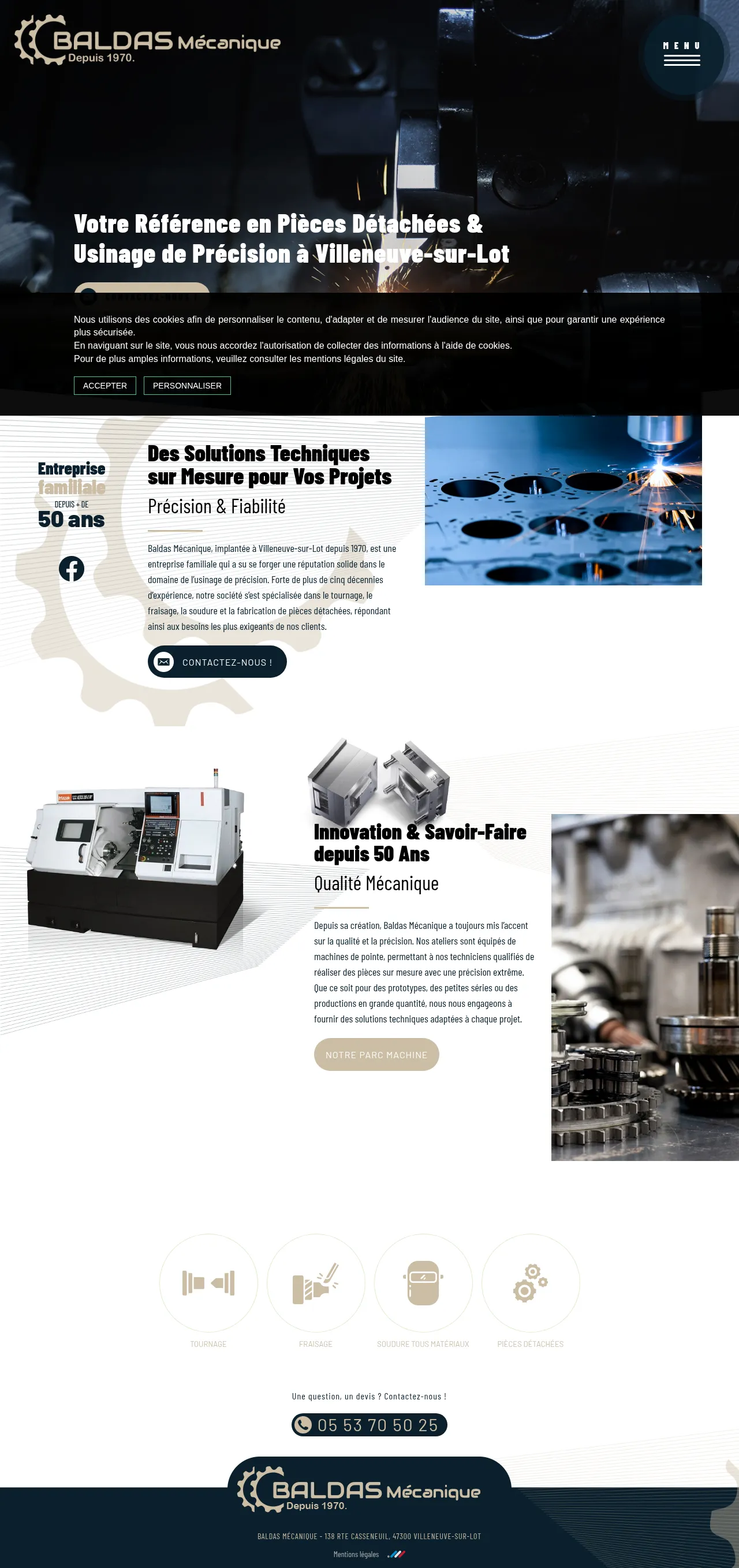 Baldas Mécanique is a family-owned machining company based in Villeneuve-sur-Lot, France, with over 50 years of experience in precision engineering. The firm specializes in CNC turning, milling, and welding services for a diverse range of industries, including aerospace, automotive, agriculture, and metallurgy. Using advanced CAD software and a comprehensive fleet of modern machinery, they produce everything from single prototypes to large-scale production runs. Their facility is equipped to handle complex metalwork, providing high-precision components with strict tolerance management. The company is committed to quality, offering customized technical solutions, repair services, and replacement parts to meet the specific requirements of their industrial clientele.