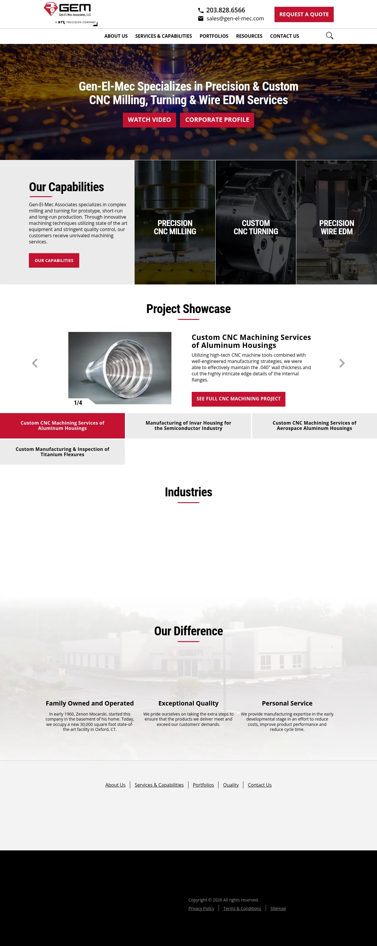 Gen-El-Mec Associates, Inc. is a family-owned manufacturing facility located in Oxford, Connecticut, specializing in complex precision machining. The company provides high-quality milling, turning, and wire EDM services for industries including semiconductor and aerospace. Their facility utilizes advanced automation, including multi-axis machining centers and micro-machining technology, to handle projects ranging from prototypes to long-run production. The firm maintains high precision standards, emphasizing strict quality control and technical expertise in early development stages to optimize manufacturing processes. They are committed to continuous investment in state-of-the-art equipment to support diverse and exacting customer requirements.