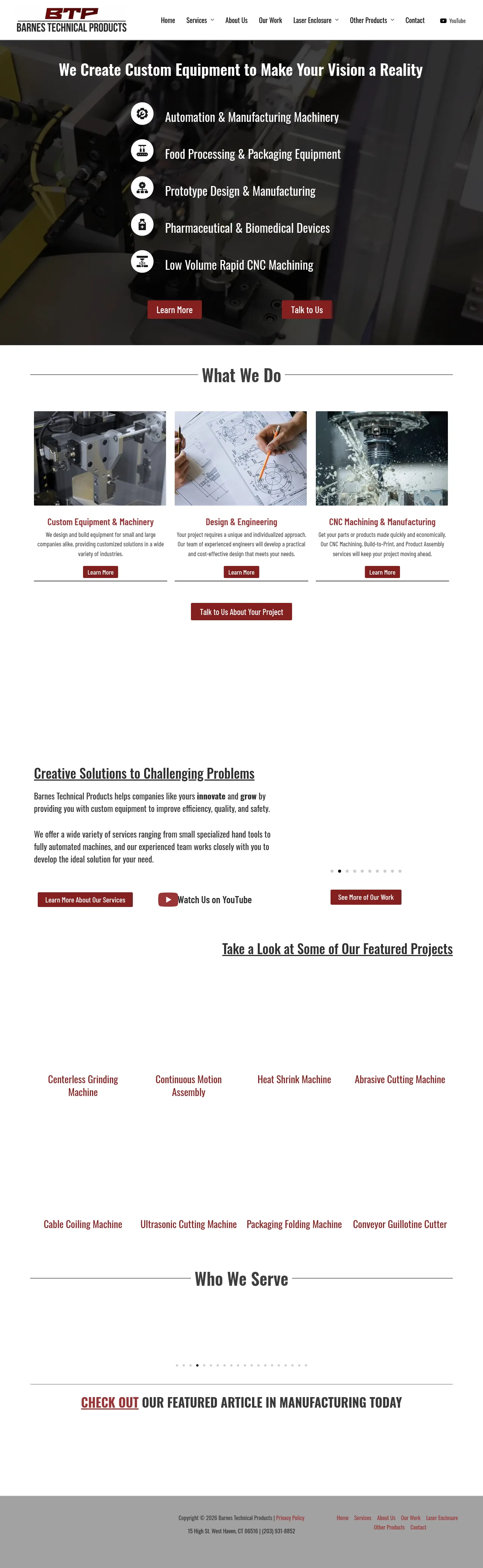 Barnes Technical Products specializes in the design and fabrication of custom industrial equipment for a diverse range of sectors. The company provides end-to-end solutions, including build-to-print manufacturing, product assembly, and rapid CNC machining services. Their engineering team focuses on developing cost-effective, practical designs tailored to improve operational efficiency, safety, and production quality. Serving both small enterprises and large-scale industrial clients, they manage projects ranging from specialized hand tools to complex automated machinery. The firm utilizes a unique, individualized approach to meet specific customer requirements and project timelines.