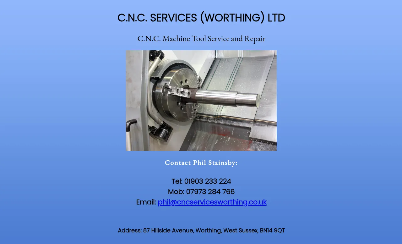 87 Hillside Ave, Worthing BN14 9QT, UK, Worthing, England, United Kingdom of Great Britain and Northern Ireland01903 233224phil@cncservicesworthing.co.ukhttp://cncservicesworthing.co.uk/