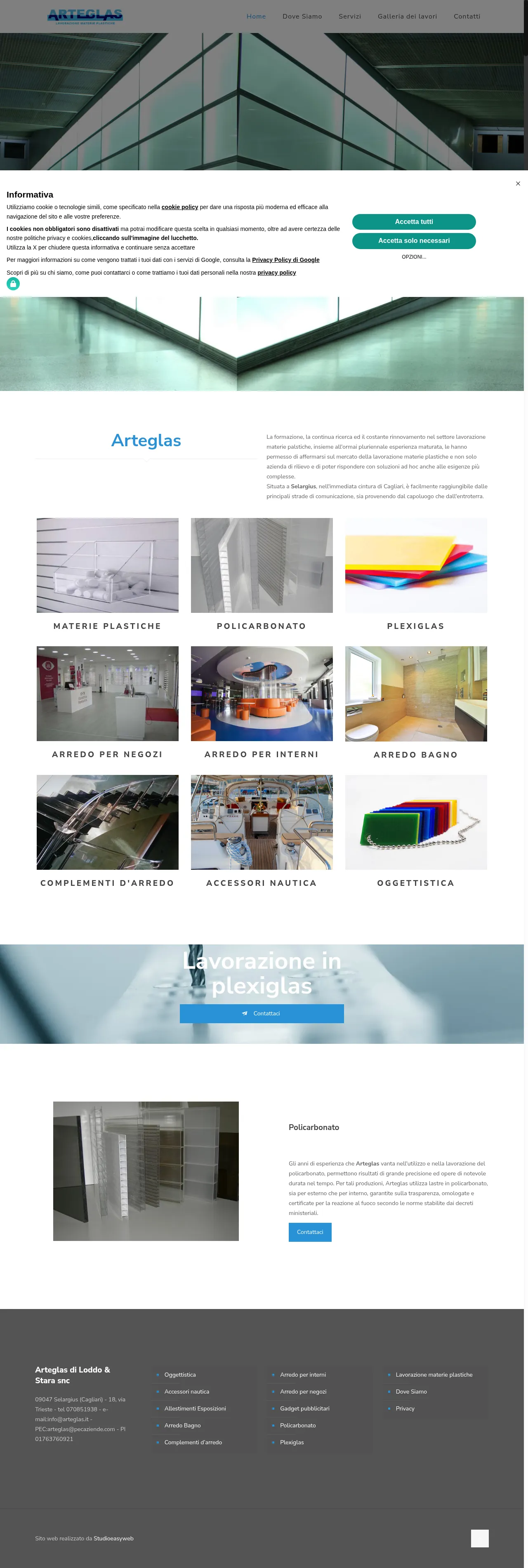 Arteglas is an Italian company specializing in the design and fabrication of custom furnishing solutions for commercial environments. Based in Sardinia, the firm provides comprehensive interior fitting services for retail shops and various business premises throughout the region. They primarily work with high-quality plastic materials to create durable and visually appealing components for modern commercial spaces. Their expertise covers the entire process from conceptualization to the final realization of shop interiors. By focusing on specialized materials like acrylics, they offer versatile and modern alternatives to traditional cabinetry and display units.