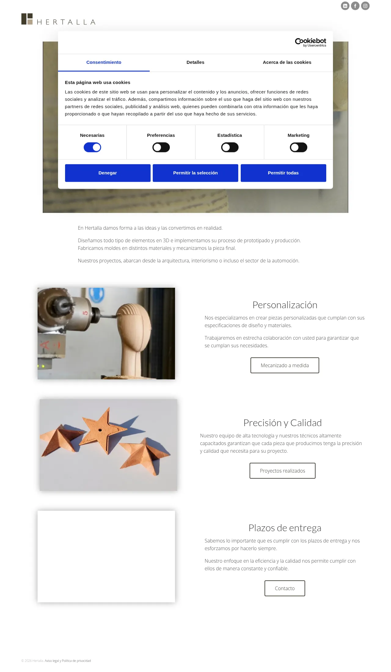 Hertalla specializes in 3D design, rapid prototyping, and custom CNC manufacturing services. The company provides comprehensive production solutions, ranging from mold fabrication to the machining of finished components. Serving diverse sectors including architecture, interior design, and automotive, the firm leverages advanced technology to ensure high precision and quality. The company is committed to consistent production standards and maintaining strict project timelines. Their team provides tailored manufacturing services designed to meet specific technical and material requirements.
