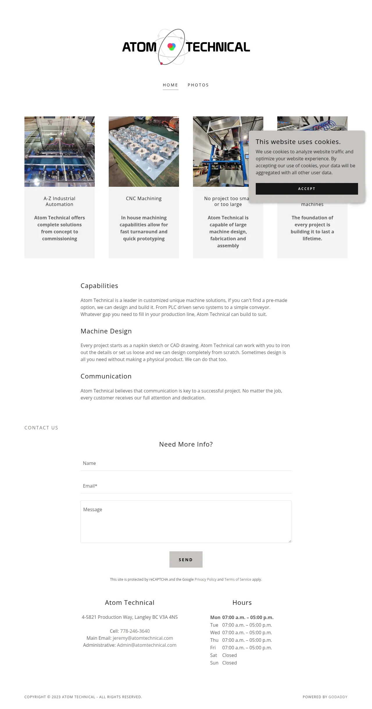 Atom Technical provides end-to-end industrial automation solutions, managing projects from initial concept through to final commissioning. The company specializes in the design, fabrication, and assembly of custom machinery tailored to specific production line requirements. Their services range from PLC-driven servo systems to conveyor design, supported by in-house machining capabilities for rapid prototyping and production. Atom Technical works with clients to refine designs based on sketches or CAD files, or can develop bespoke systems from scratch. The firm emphasizes long-term reliability and build quality across all project scales.