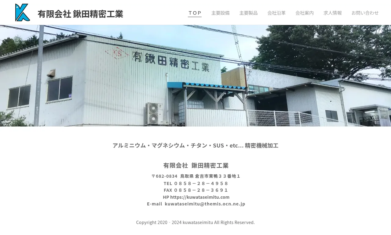 Kuwata Seimitsu Kogyo is a Japanese precision manufacturing company established in 1979 and based in Kurayoshi, Tottori. The company specializes in the precision machining of non-ferrous metals, including aluminum and magnesium, with a particular focus on complex, thin-walled components. Their services support a diverse range of industries, including automotive, marine, agricultural machinery, and industrial equipment. They possess internal capabilities for designing and manufacturing custom processing jigs to ensure high-quality and efficient production. Through active investment in advanced CNC technology and rigorous quality management, the company maintains high production standards for mass-manufactured automotive and industrial parts.