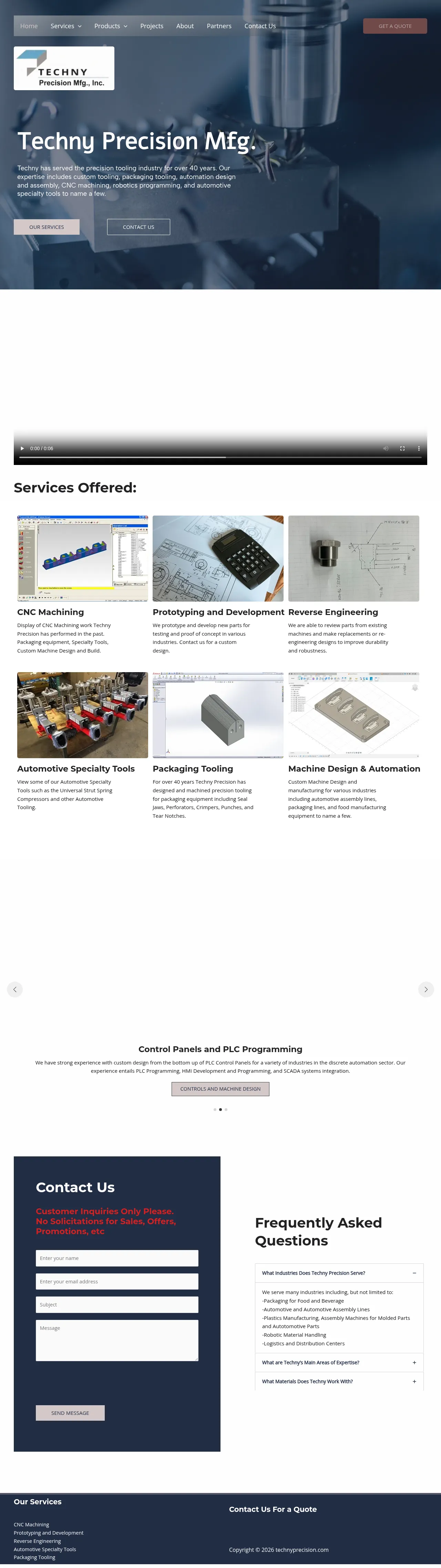 Techny Precision is a full-service provider of precision tooling and industrial automation solutions with over four decades of industry experience. The company specializes in custom machine design, CNC machining, and the development of specialty automotive tools and packaging equipment. Their technical capabilities include PLC programming, robotics integration, reverse engineering, and advanced prototyping. Serving a diverse range of sectors including food and beverage, automotive assembly, and logistics, Techny Precision provides end-to-end support from initial design through assembly. The firm utilizes comprehensive CAD/CAM software to ensure high-precision manufacturing for complex mechanical components.