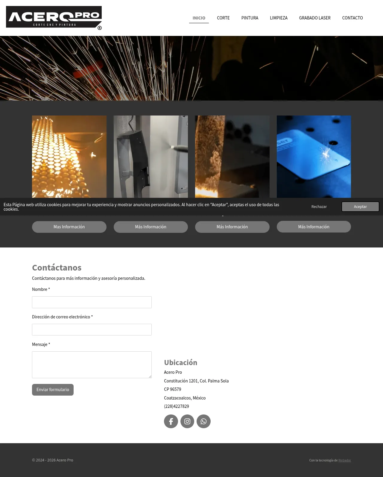 Acero Pro is a metal fabrication company based in Coatzacoalcos, Mexico, specializing in CNC steel cutting and surface treatments. The company provides laser, plasma and oxy-fuel cutting along with electrostatic powder coating, laser cleaning and laser engraving services. Acero Pro focuses on precision cutting and surface finishing for structural and industrial metal components.