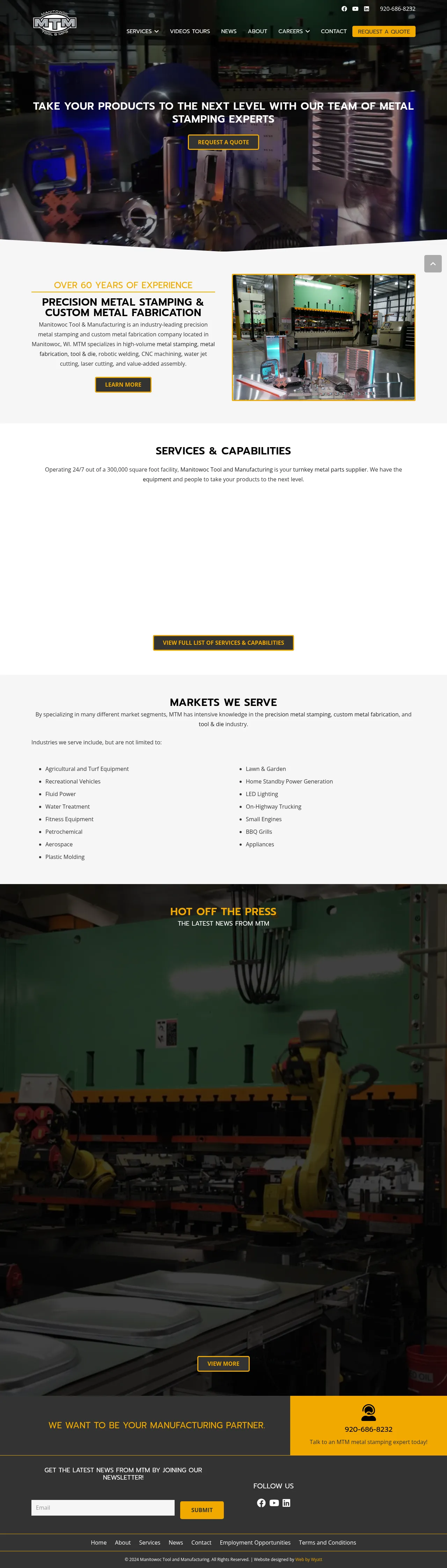 Manitowoc Tool and Manufacturing, LLC is a full-service metal stamping provider with over 60 years of industry experience. Operating out of a 300,000 square-foot facility, the company maintains continuous 24/7 production capabilities to support high-volume manufacturing needs. They serve a diverse array of sectors, including aerospace, petrochemical, water treatment, and recreational vehicle manufacturing. The company focuses on developing long-term manufacturing partnerships through expert technical support and robust production standards. Their facility is structured to handle complex fabrication requirements across multiple industrial market segments.