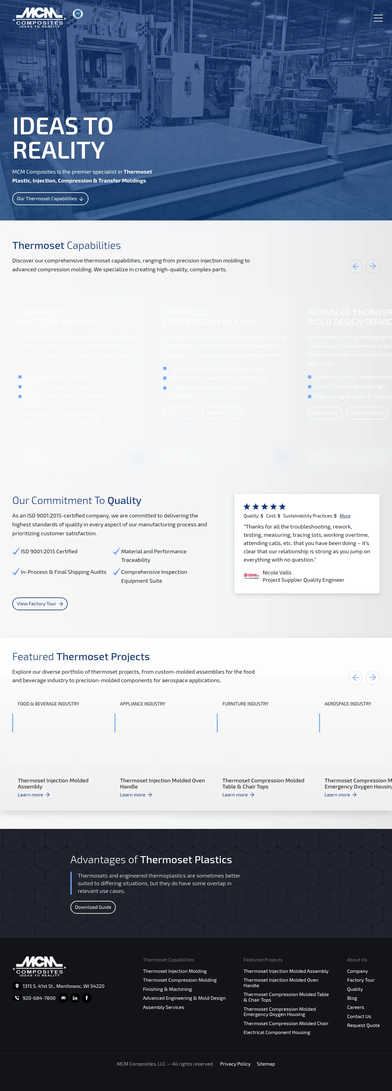 MCM Composites, LLC is a specialized manufacturing partner focused on thermoset injection and compression molding. The company serves diverse industries, including aerospace, medical, appliance, and furniture sectors, offering solutions ranging from prototype development to high-volume production. Their facility integrates engineering, tool design, and advanced finishing services such as 4-axis CNC machining and automated assembly under one roof. By leveraging metal-to-plastic conversion expertise and maintaining tight tolerances, the company supports complex component production. The organization is committed to quality, efficiency, and scalability, utilizing a well-equipped facility that includes in-house tool repair and dedicated quality inspection labs.
