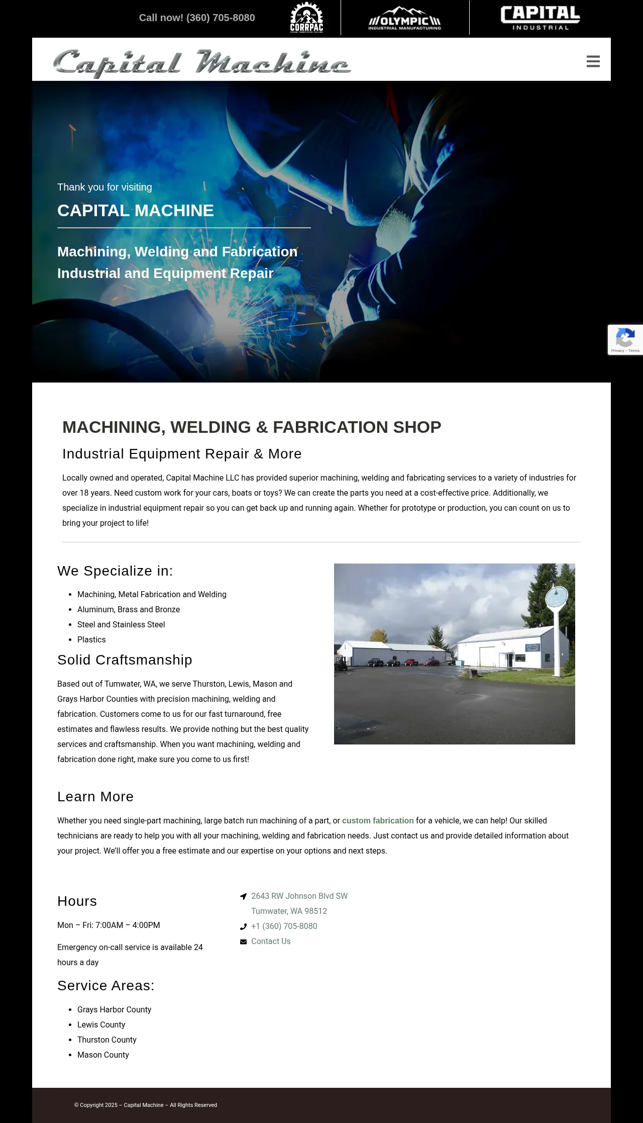 2643 RW Johnson Boulevard Southwest, Tumwater, WA 98512, USA, Olympia, Washington, United States(360) 705-8080http://www.capitalmachinetumwater.com/